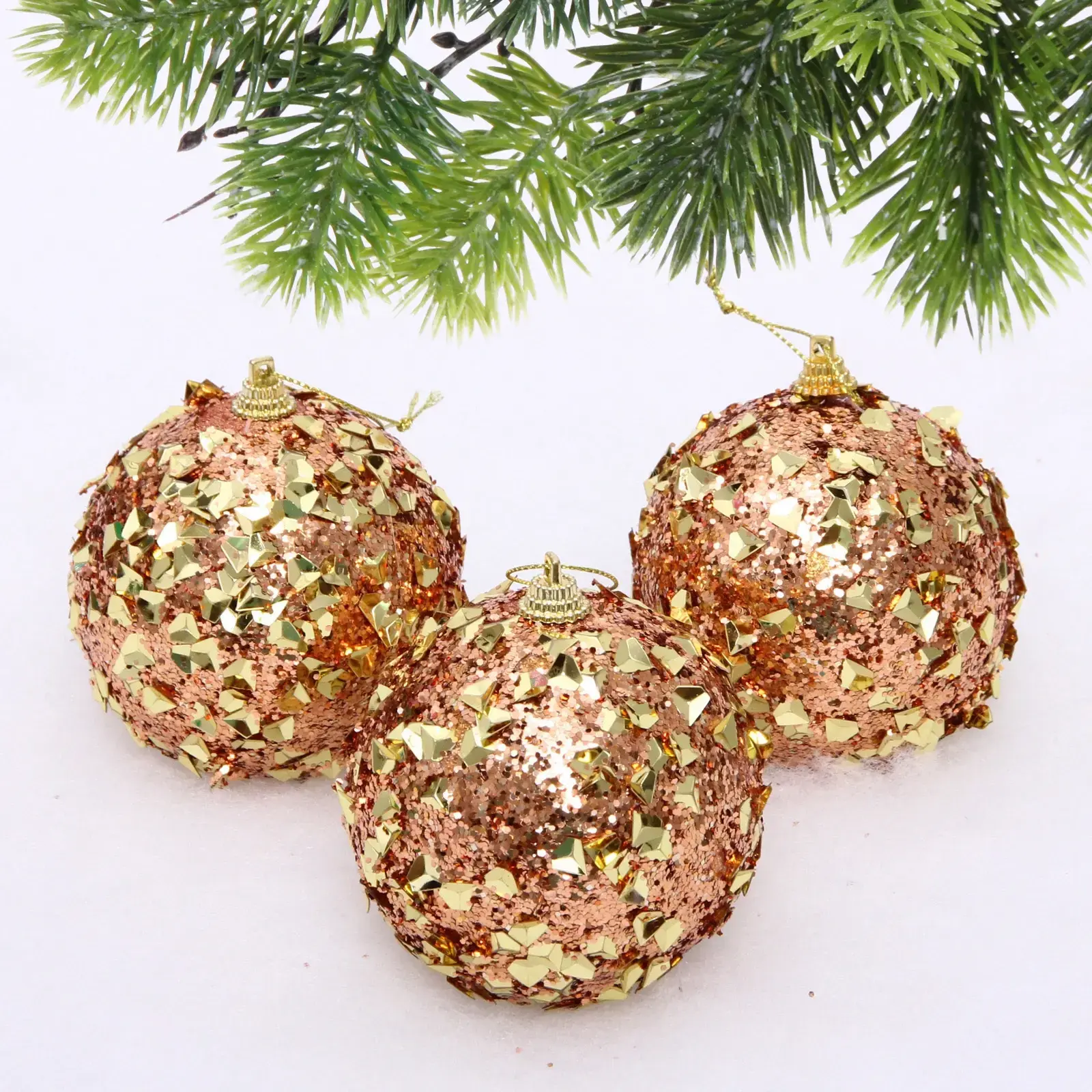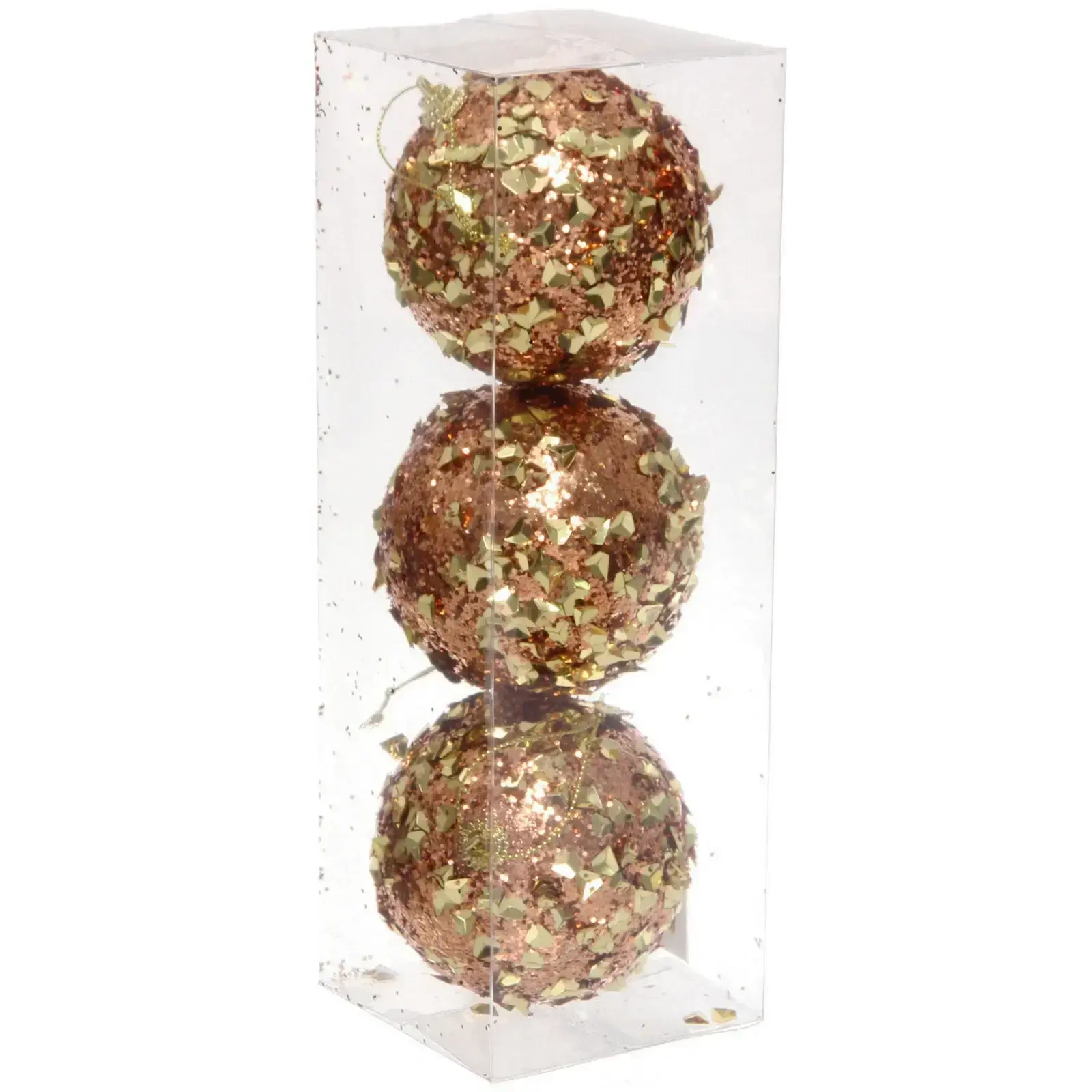 Новогодние шары «GLAME - Волшебный блеск» 8 см (набор 3 шт), Розовое золото, пластик, для елки и декорирования