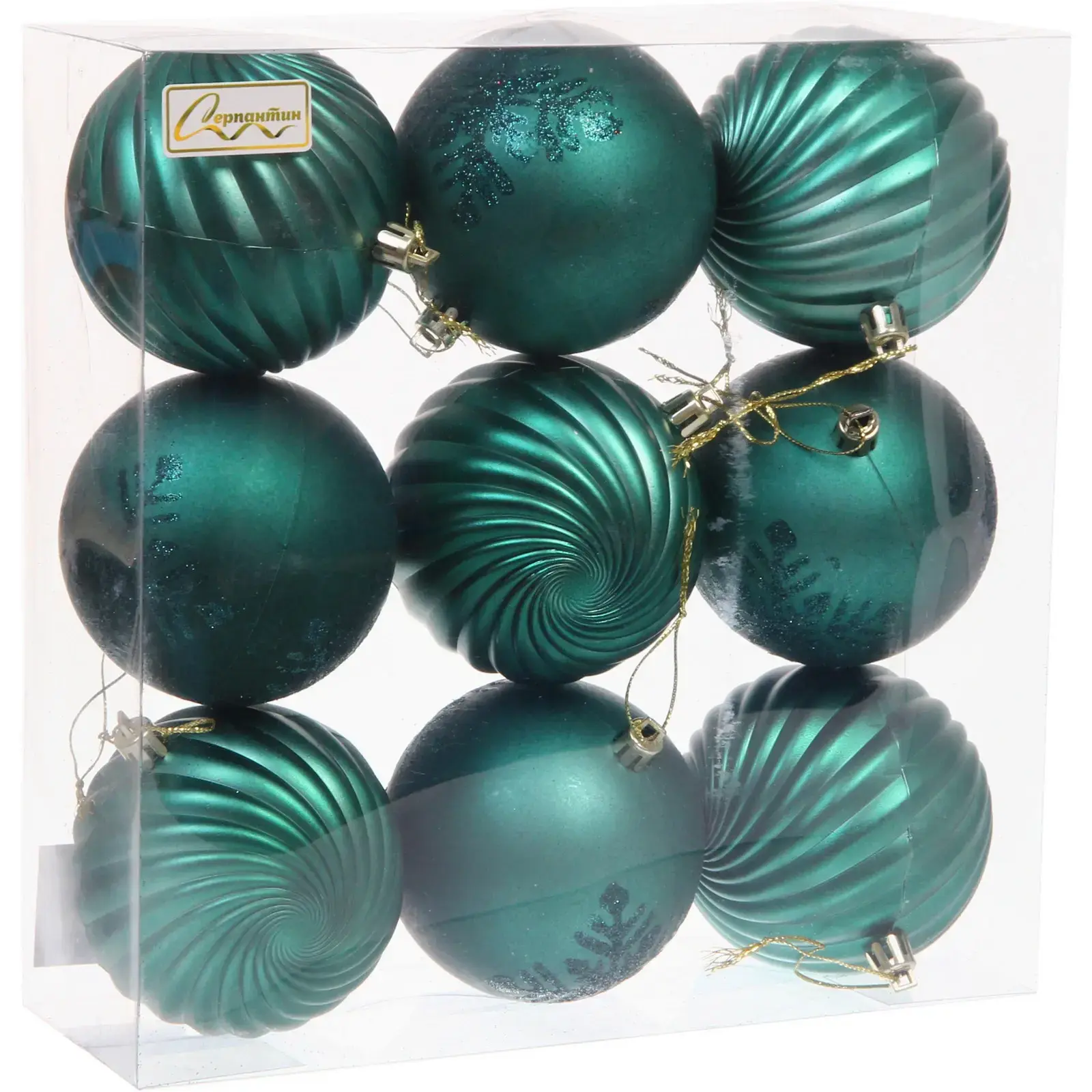 Новогодние шары «Изящные узоры» 8 см (набор 9 шт), Изумруд, пластик, для елки и декорирования