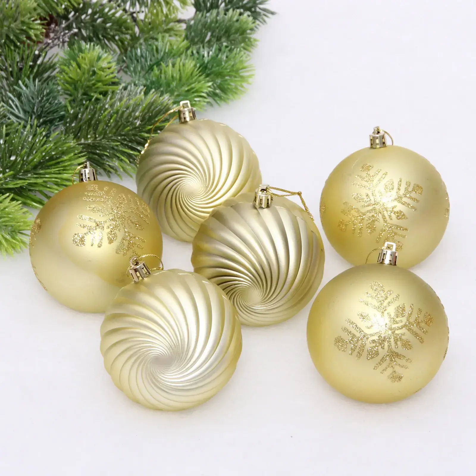 Новогодние шары «Изящные узоры» 8 см (набор 9 шт), Золото, пластик, для елки и декорирования