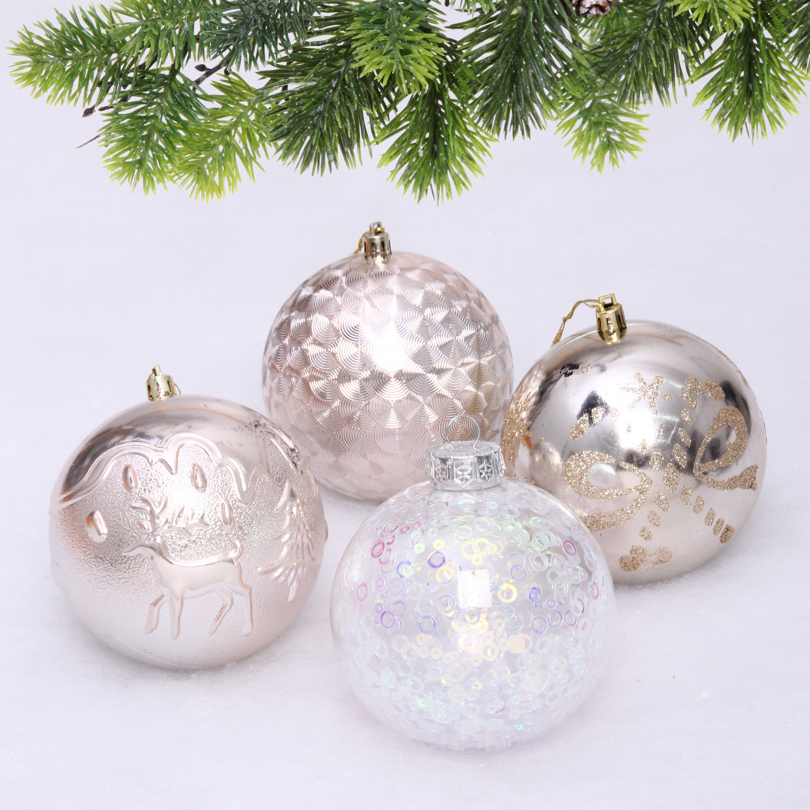Новогодние шары «Сказочное королевство» 10 см (набор 8 шт), Шампань, пластик, для елки и декорирования