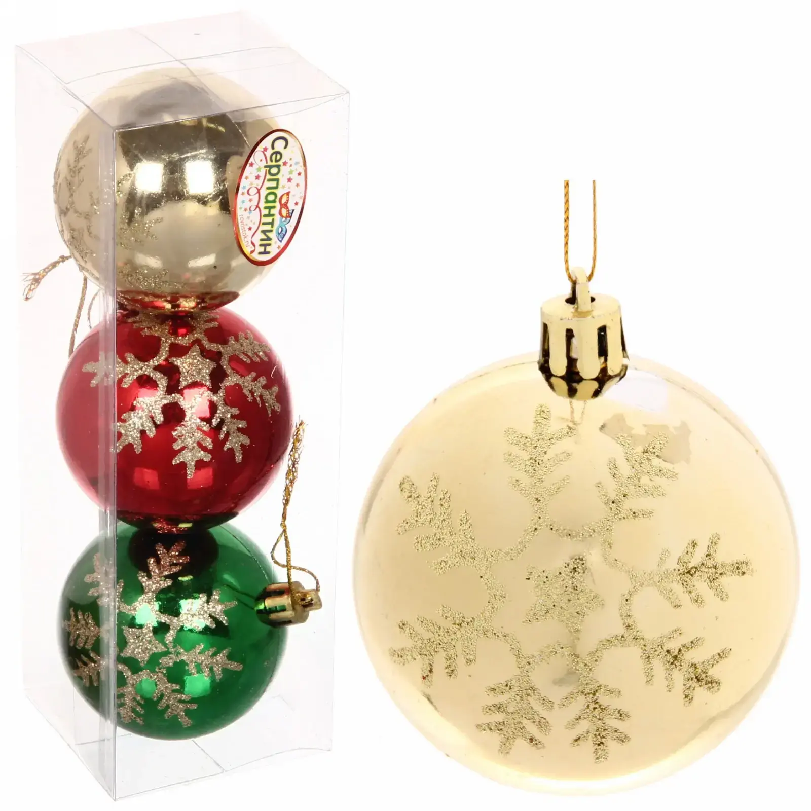 Шары идеально подходят для украшения новогодней ёлки, а также могут использоваться для создания праздничных композиций и декора. Они легко подвешиваются благодаря металлическим креплениям, что делает процесс украшения простым и приятным. Набор состоит из трех шаров: золотого, красного и зелёного, каждый из которых украшен изысканным узором снежинок. Эти цвета прекрасно сочетаются друг с другом, создавая гармоничное оформление.