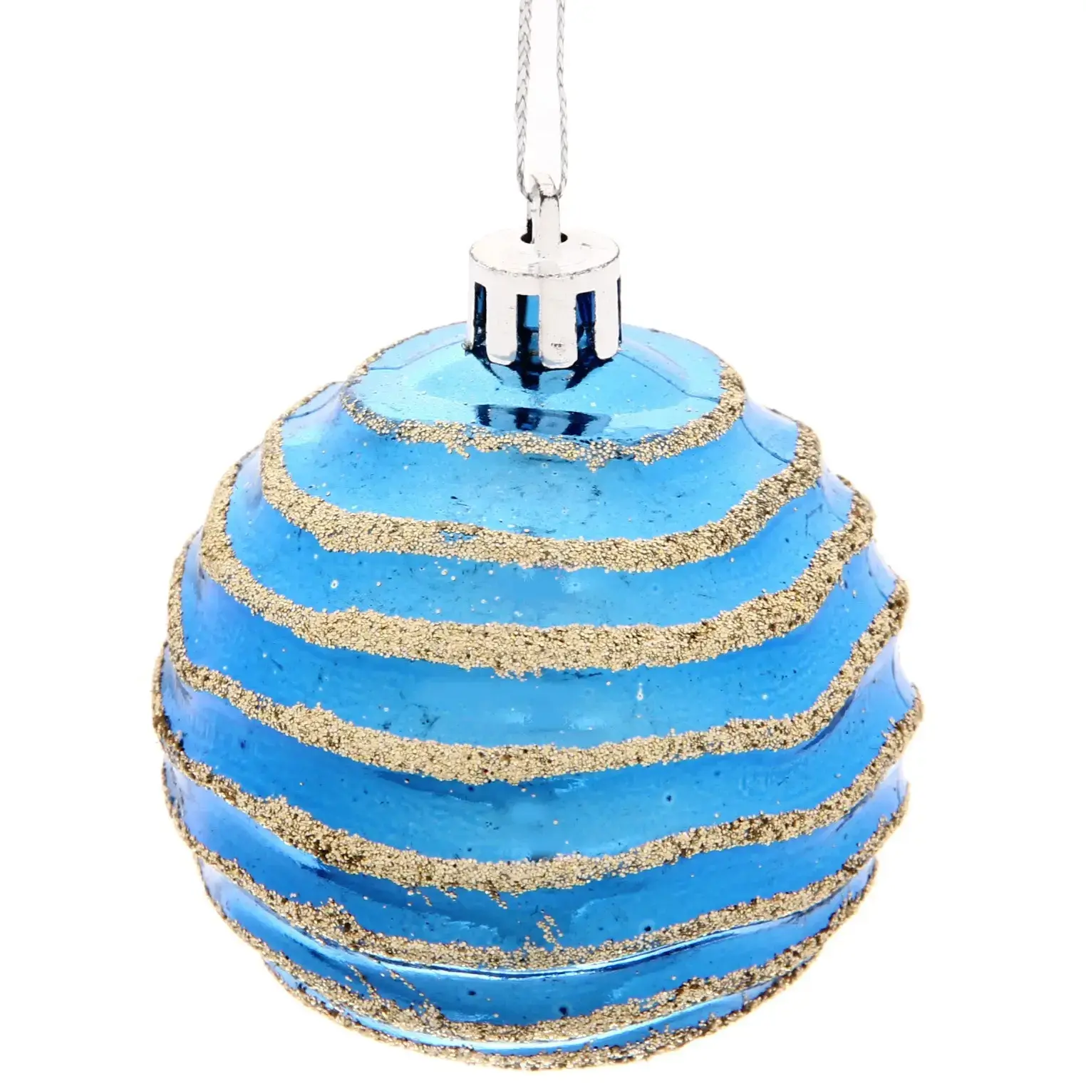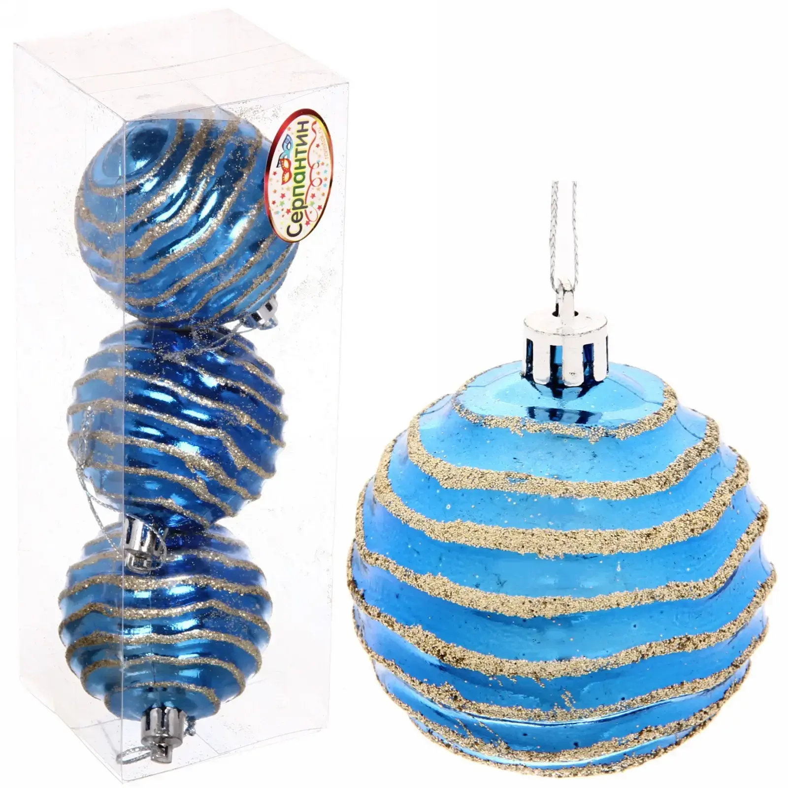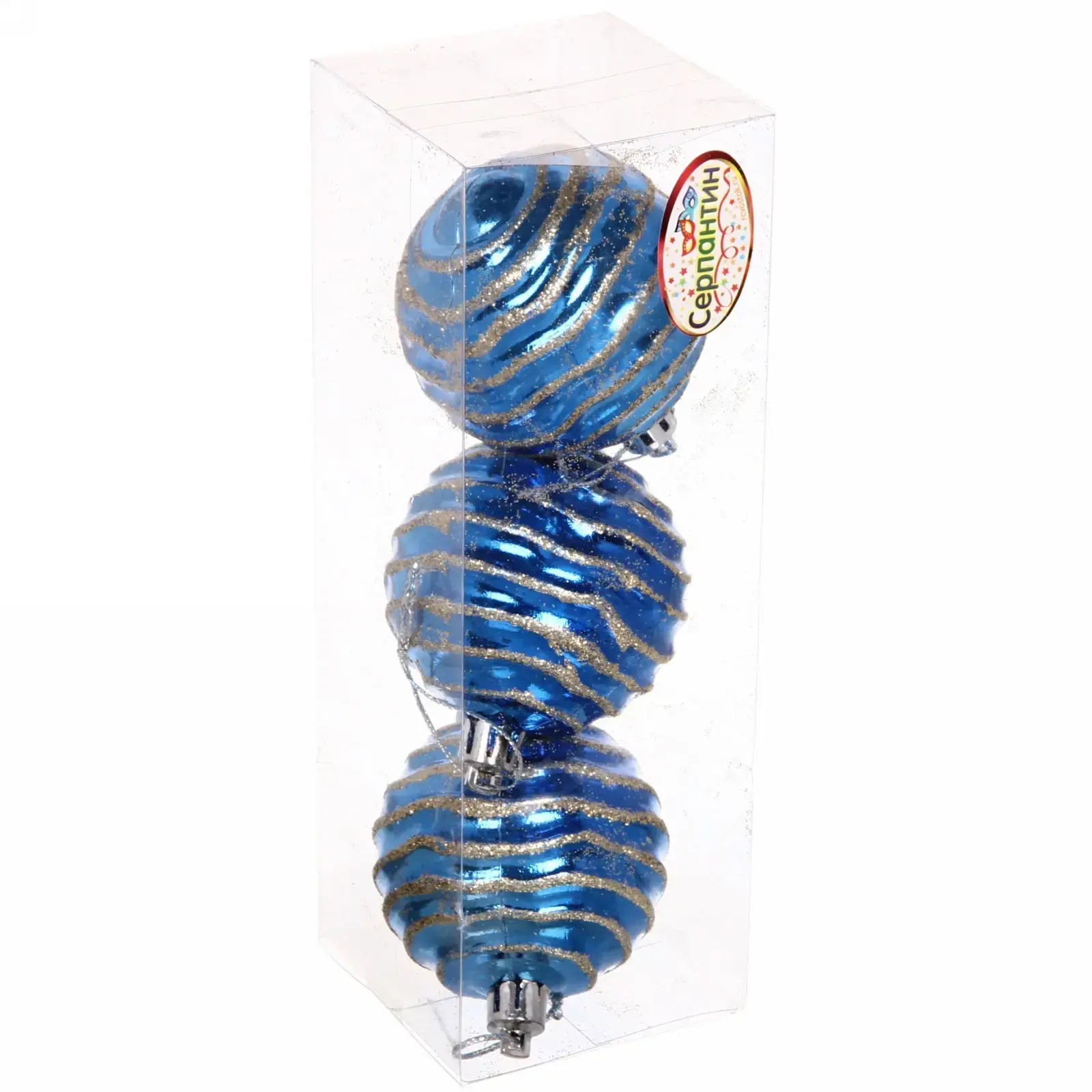 Новогодние шары «Снежная волна» 6 см (набор 3шт), синий/золото, пластик, для елки и декорирования