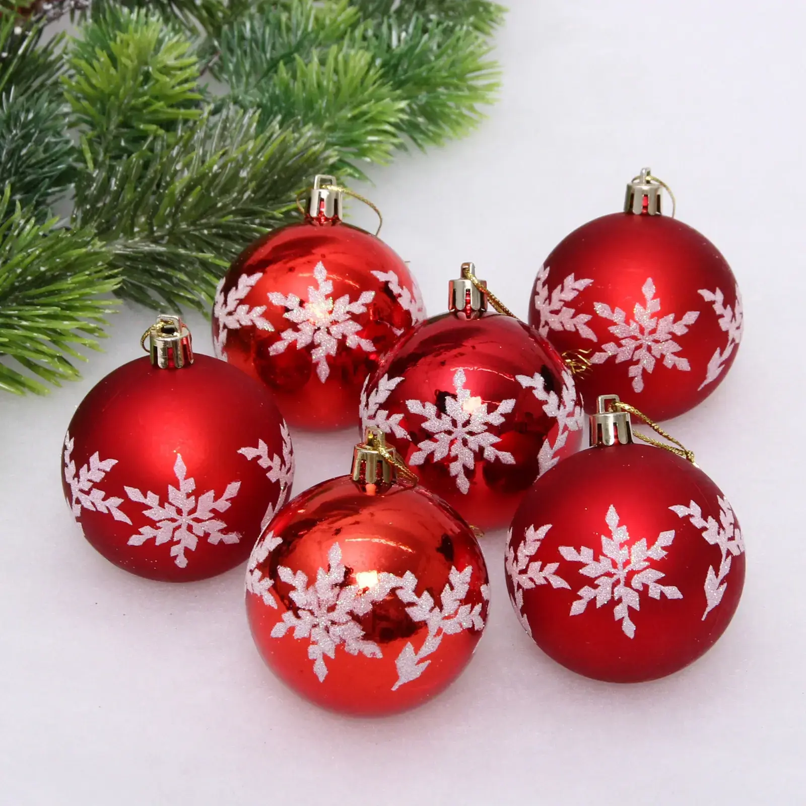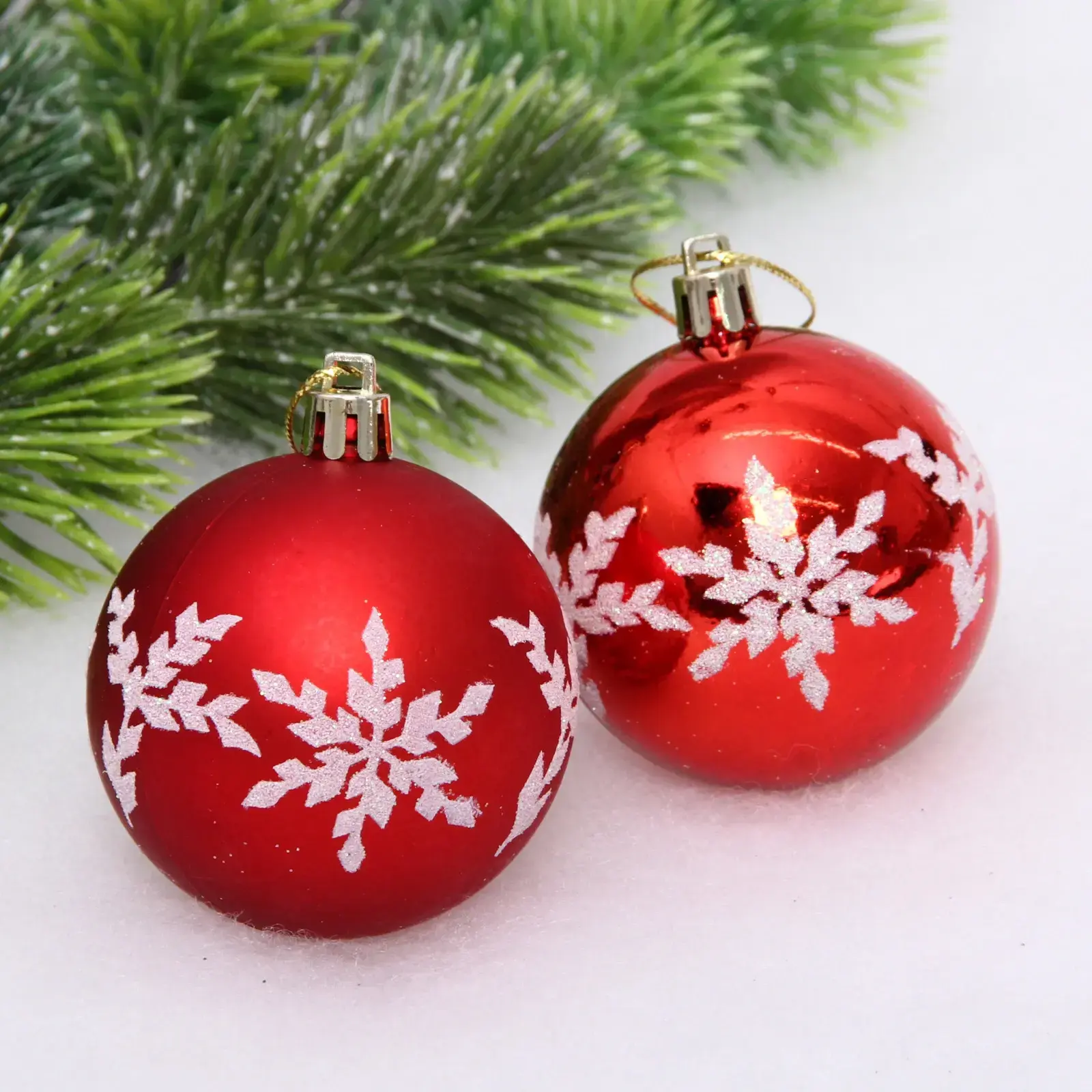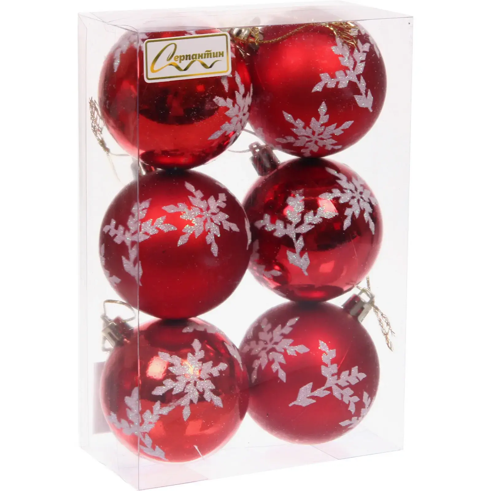 Новогодние шары «Снежный шарм» 6 см (набор 6 шт), Красный, пластик, для елки и декорирования