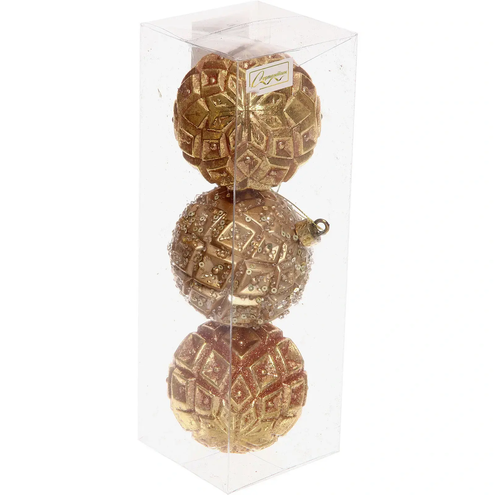 Новогодние шары VERSAILLES «Калипсо» 8 см (набор 3 шт), Розовое золото, пластик, для елки и декорирования