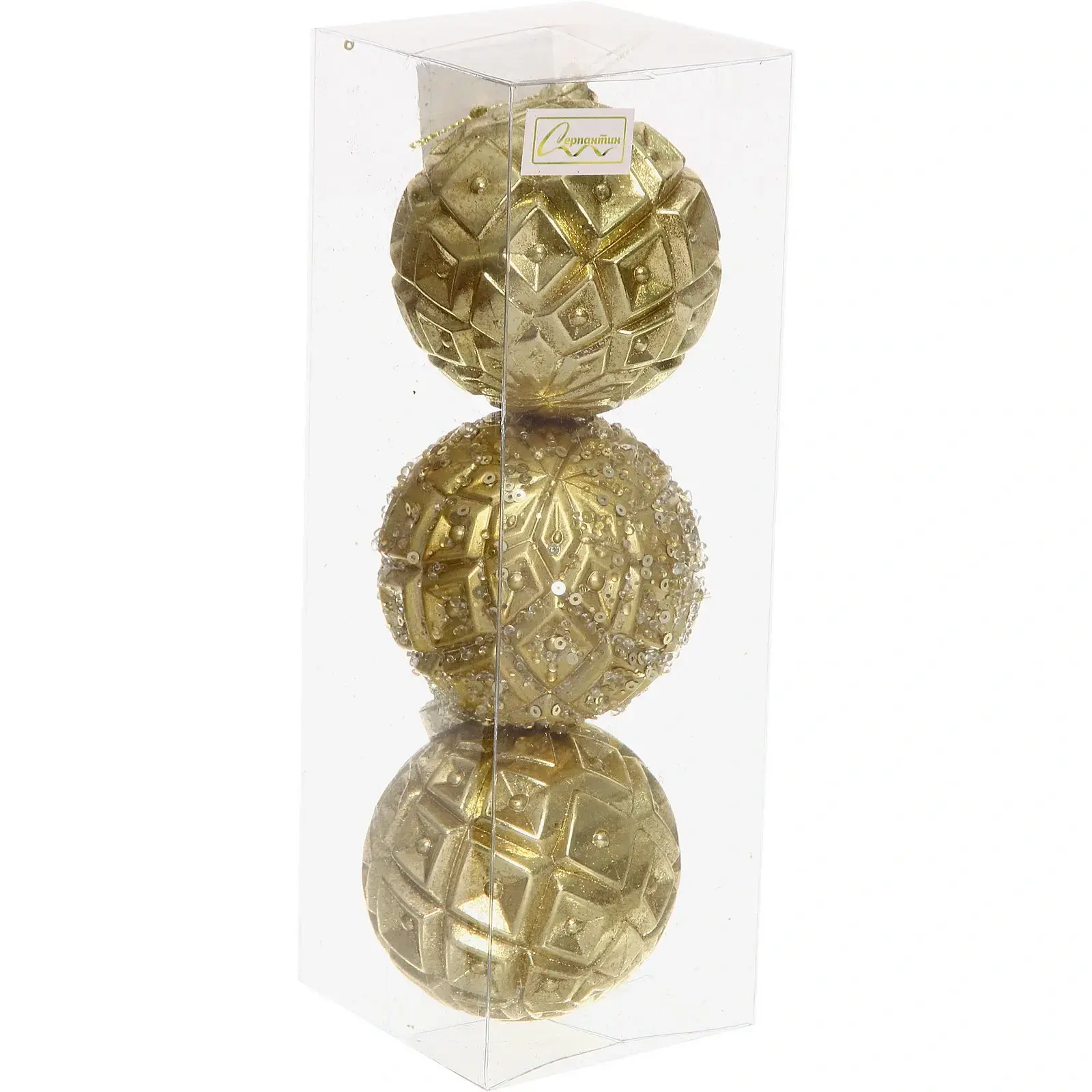 Преобразите новогоднюю елку с помощью элегантных шаров 'Калипсо'. Их золотистый блеск и изысканный дизайн добавят вашему празднику особого шарма.