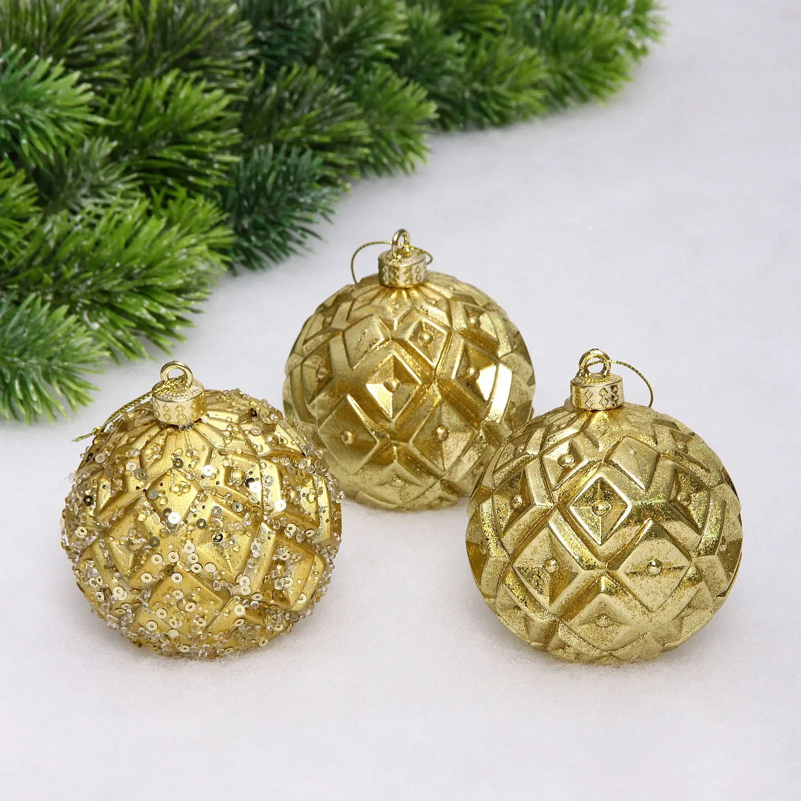 Новогодние шары VERSAILLES «Калипсо» 8 см (набор 3 шт), Золото, пластик, для елки и декорирования