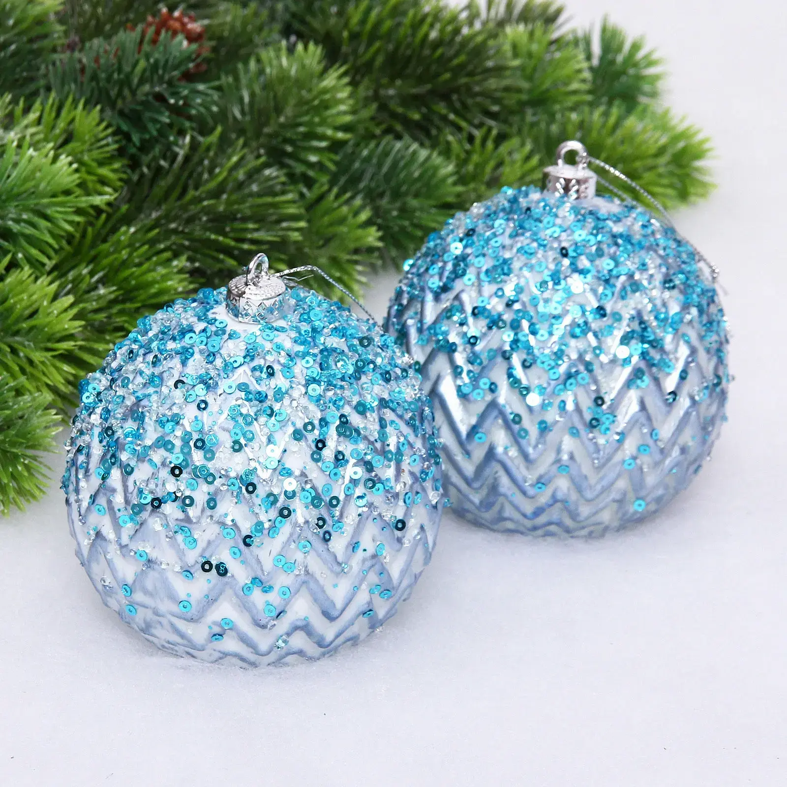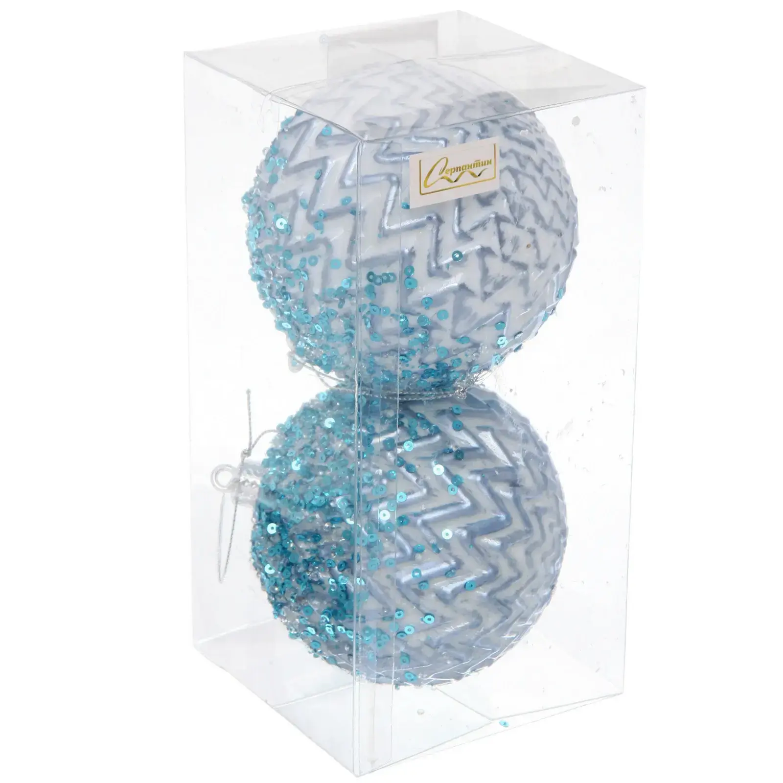 Новогодние шары VERSAILLES «Кассиопея» 10 см (набор 2 шт), Голубой, пластик, для елки и декорирования