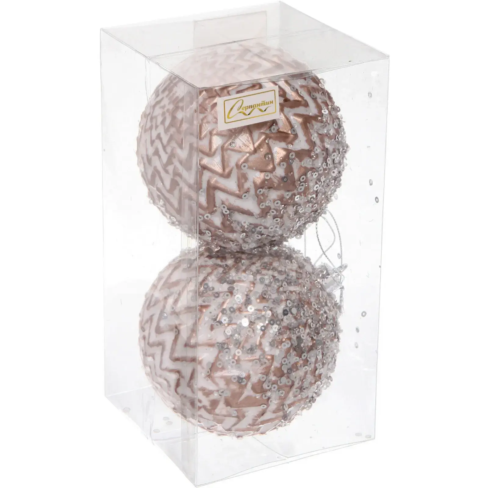 Новогодние шары VERSAILLES «Кассиопея» 10 см (набор 2 шт), Розовый, пластик, для елки и декорирования