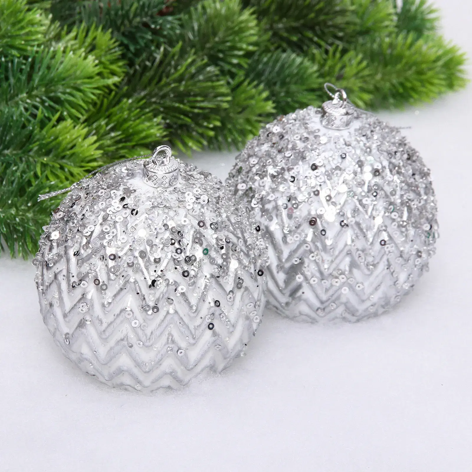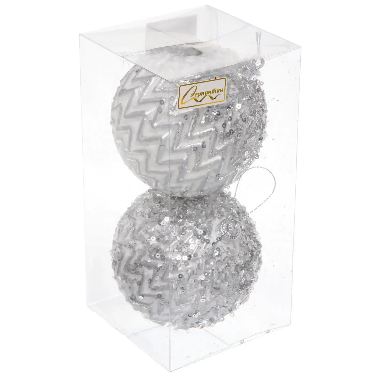 Новогодние шары VERSAILLES «Кассиопея» 10 см (набор 2 шт), Серебро, пластик, для елки и декорирования