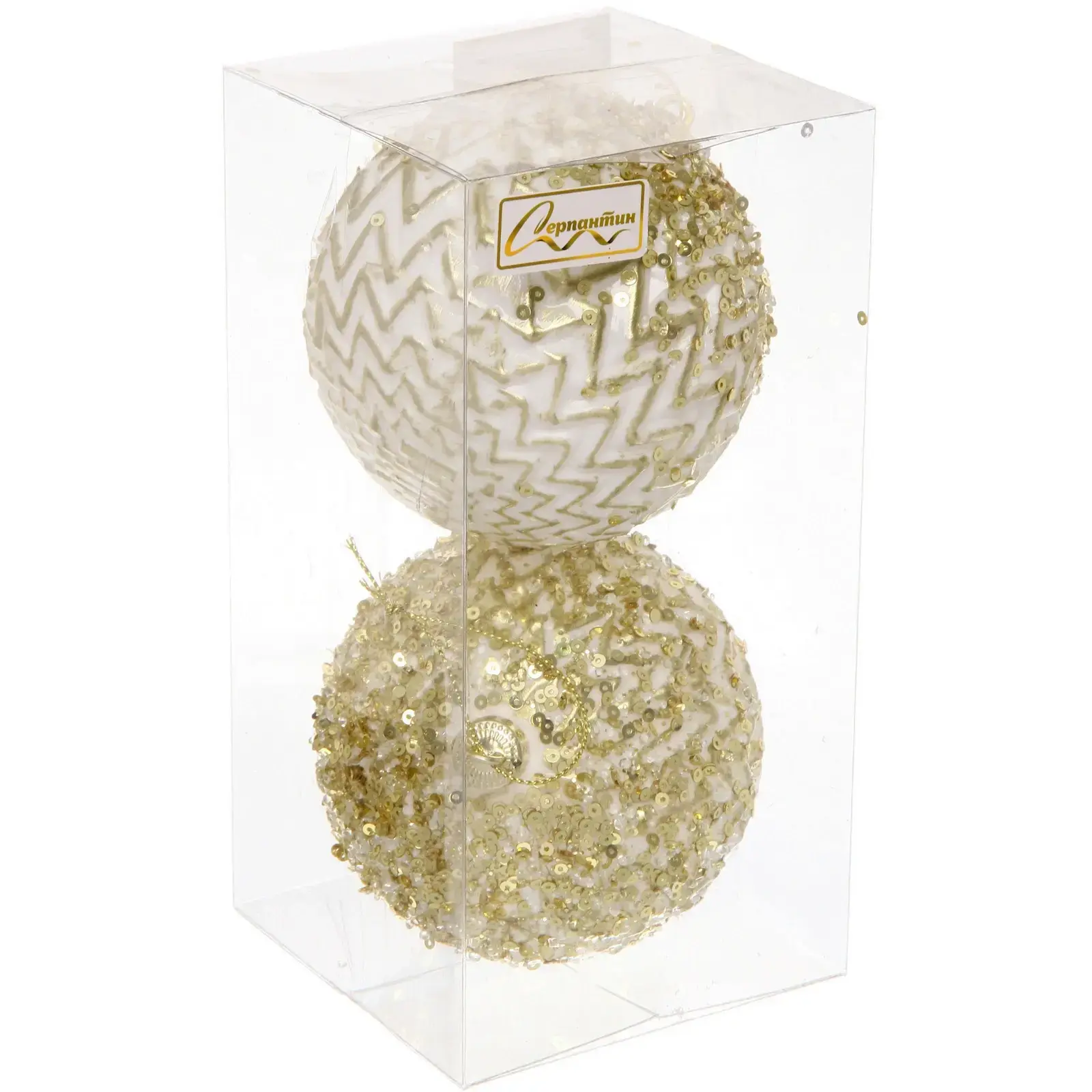 Новогодние шары 'Кассиопея' станут изысканным украшением вашей елки и подарят ощущение волшебства. Благородное сочетание белого и золота добавит элегантности новогоднему декору.