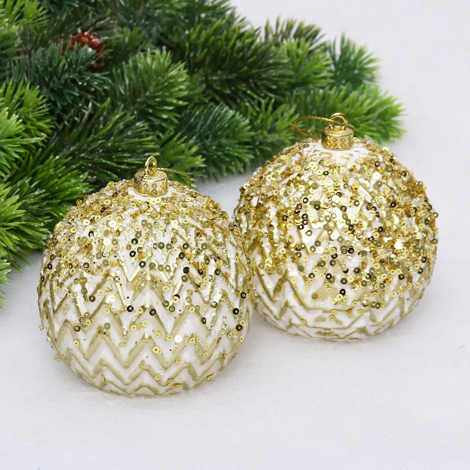 Новогодние шары VERSAILLES «Кассиопея» 10 см (набор 2 шт), Золото, пластик, для елки и декорирования