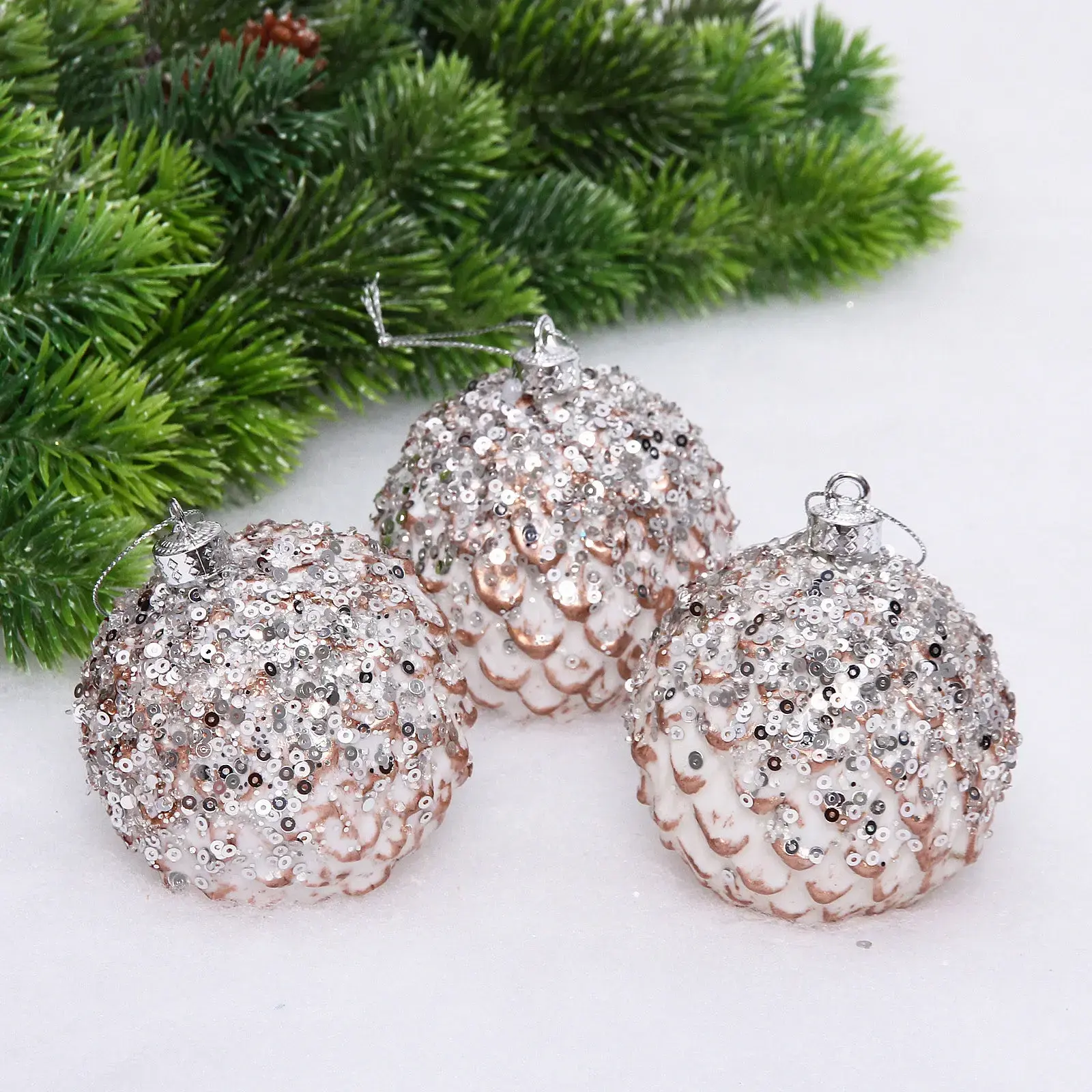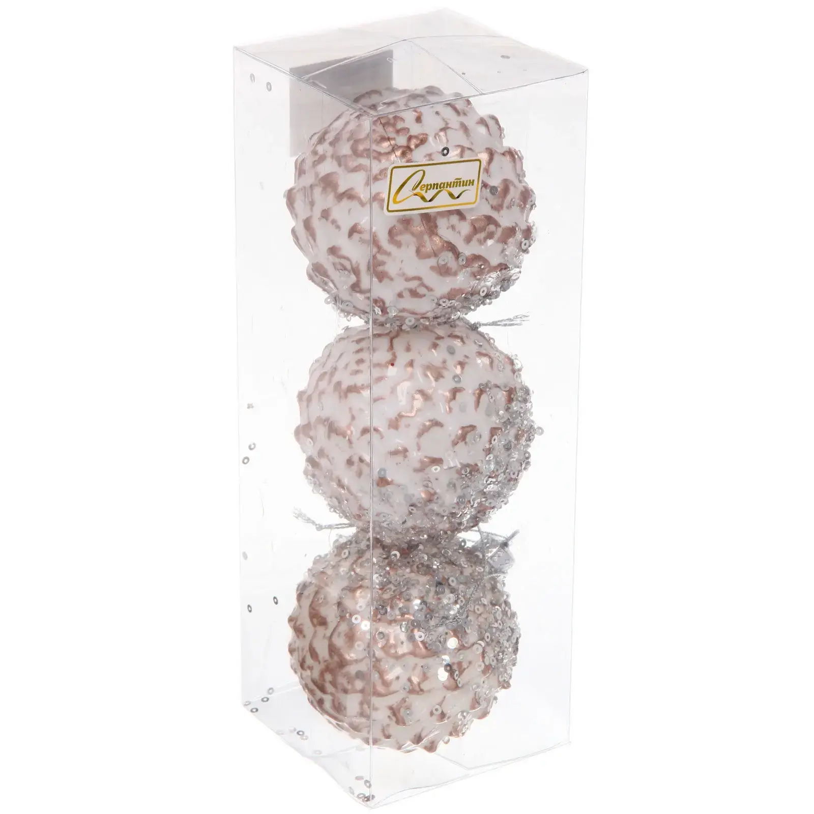 Новогодние шары VERSAILLES «Кефея» 8 см (набор 3 шт), Розовый, пластик, для елки и декорирования