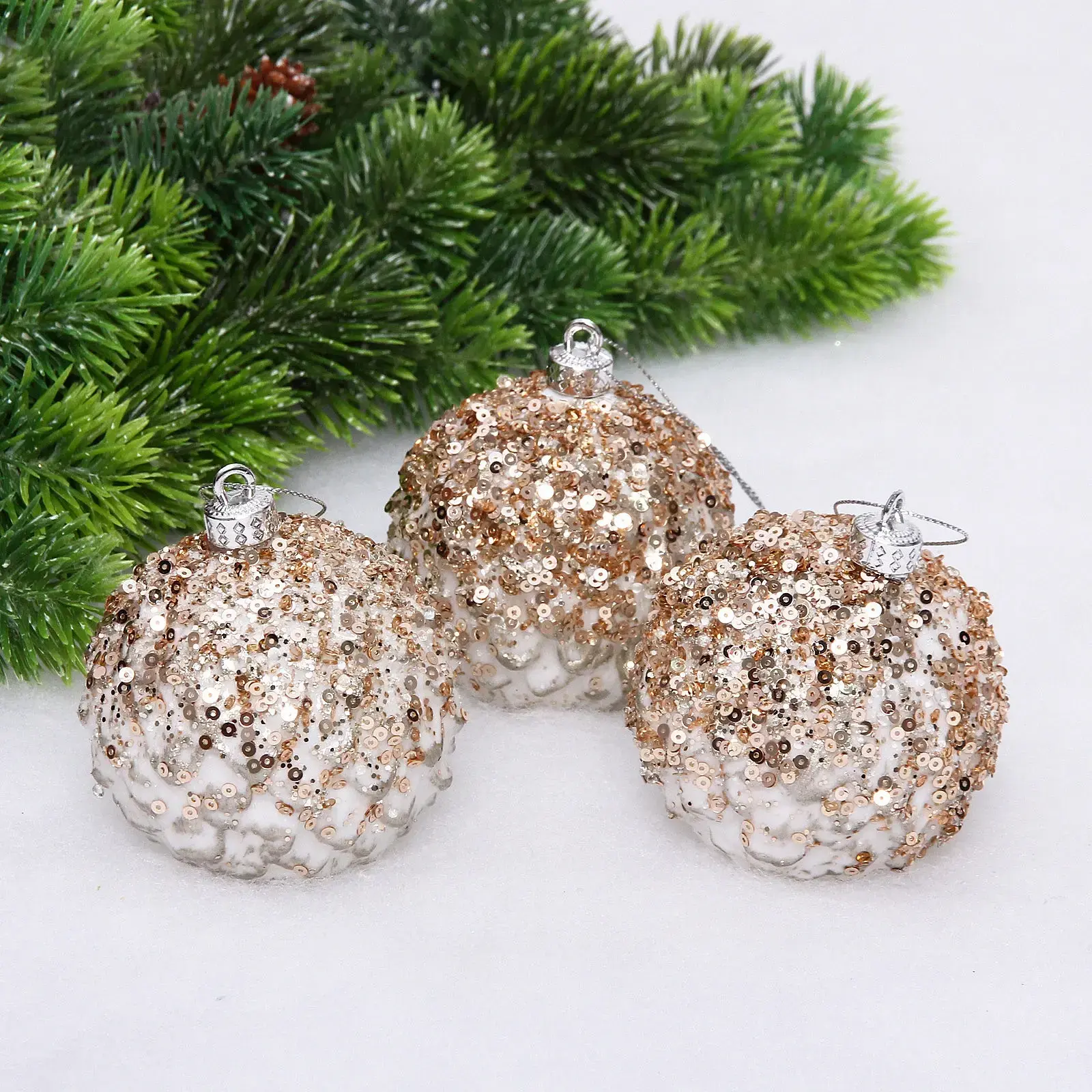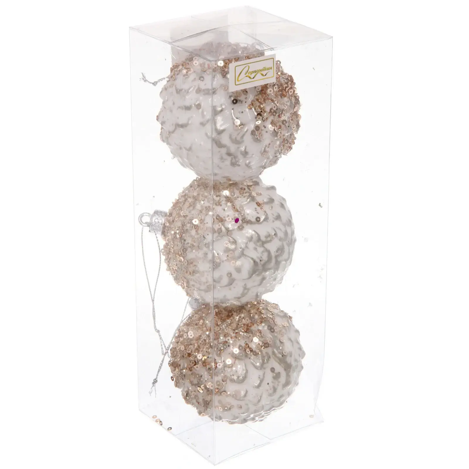 Новогодние шары VERSAILLES «Кефея» 8 см (набор 3 шт), Шампань, пластик, для елки и декорирования