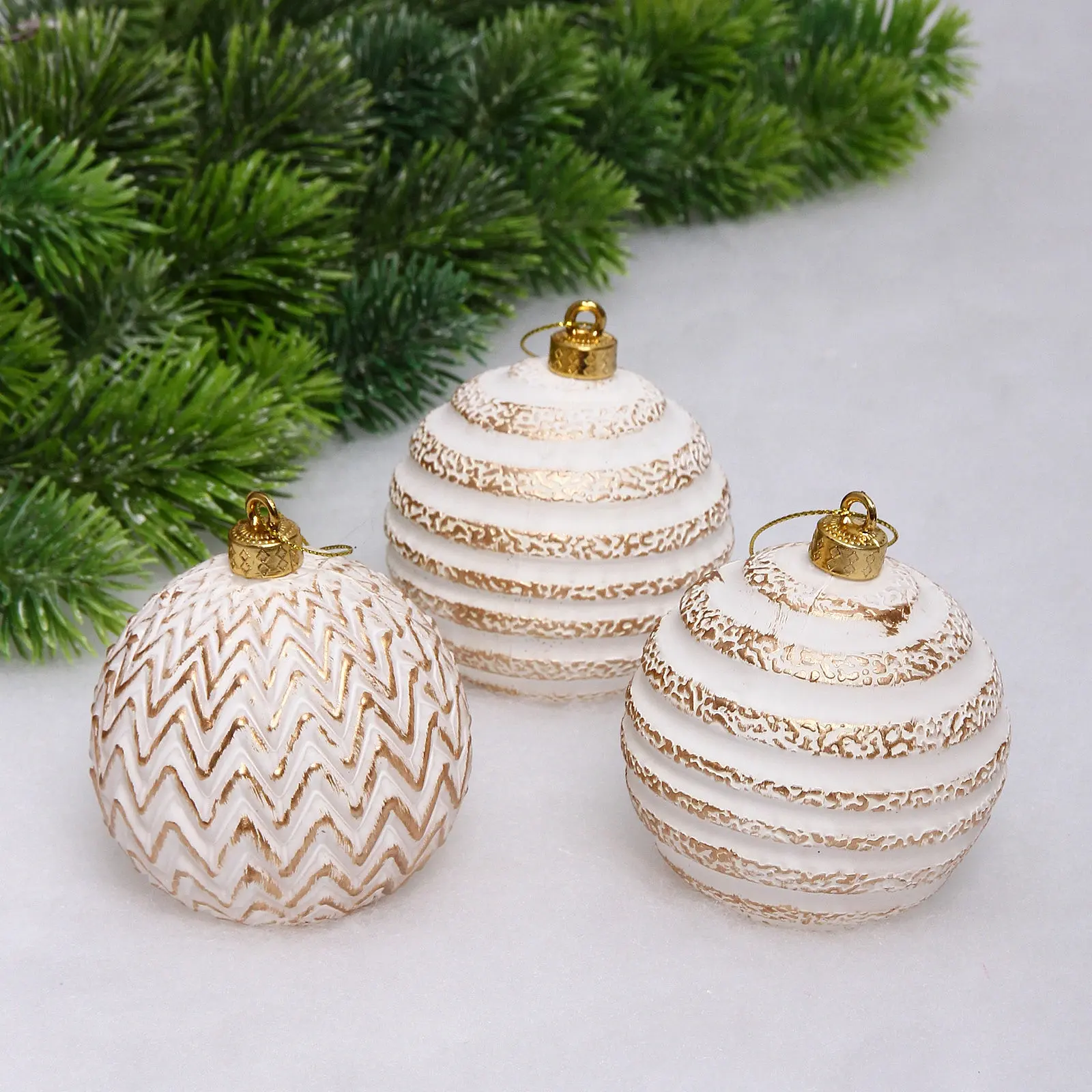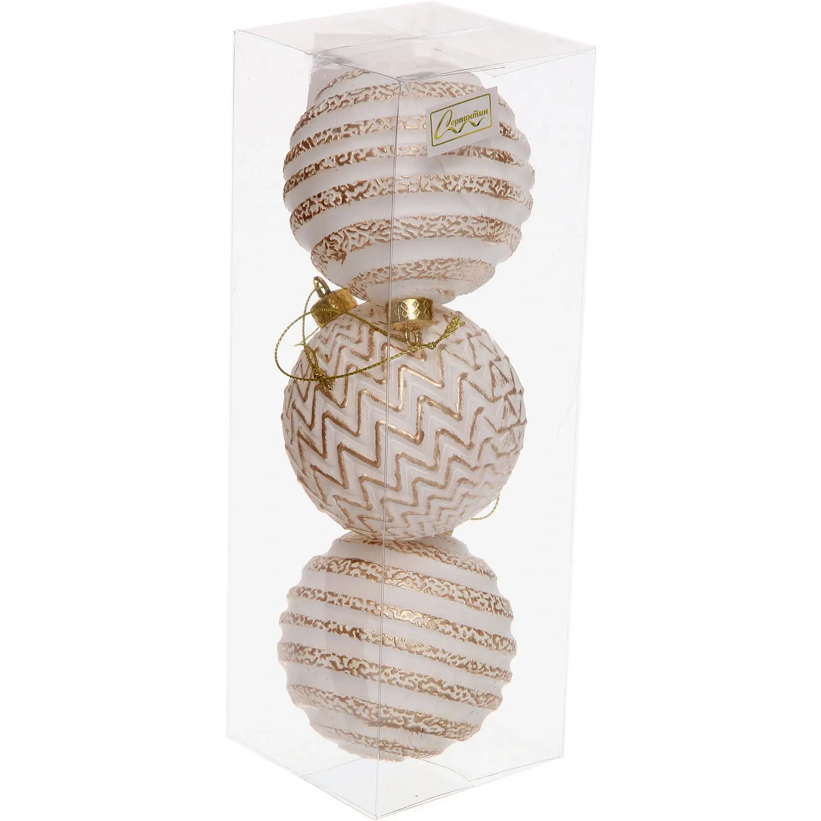 Новогодние шары VERSAILLES «Лесное таинство» 8 см (набор 3 шт), Белый/розовое золото, пластик, для елки и декорирования