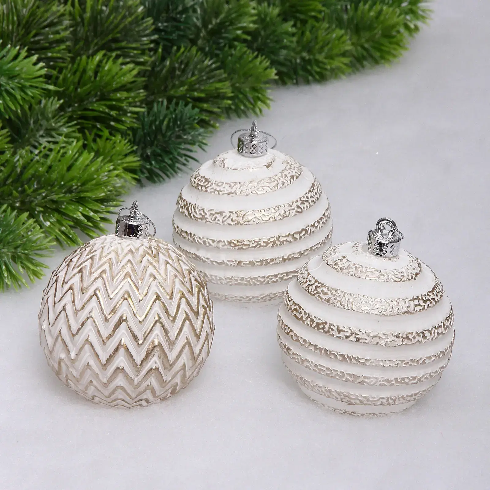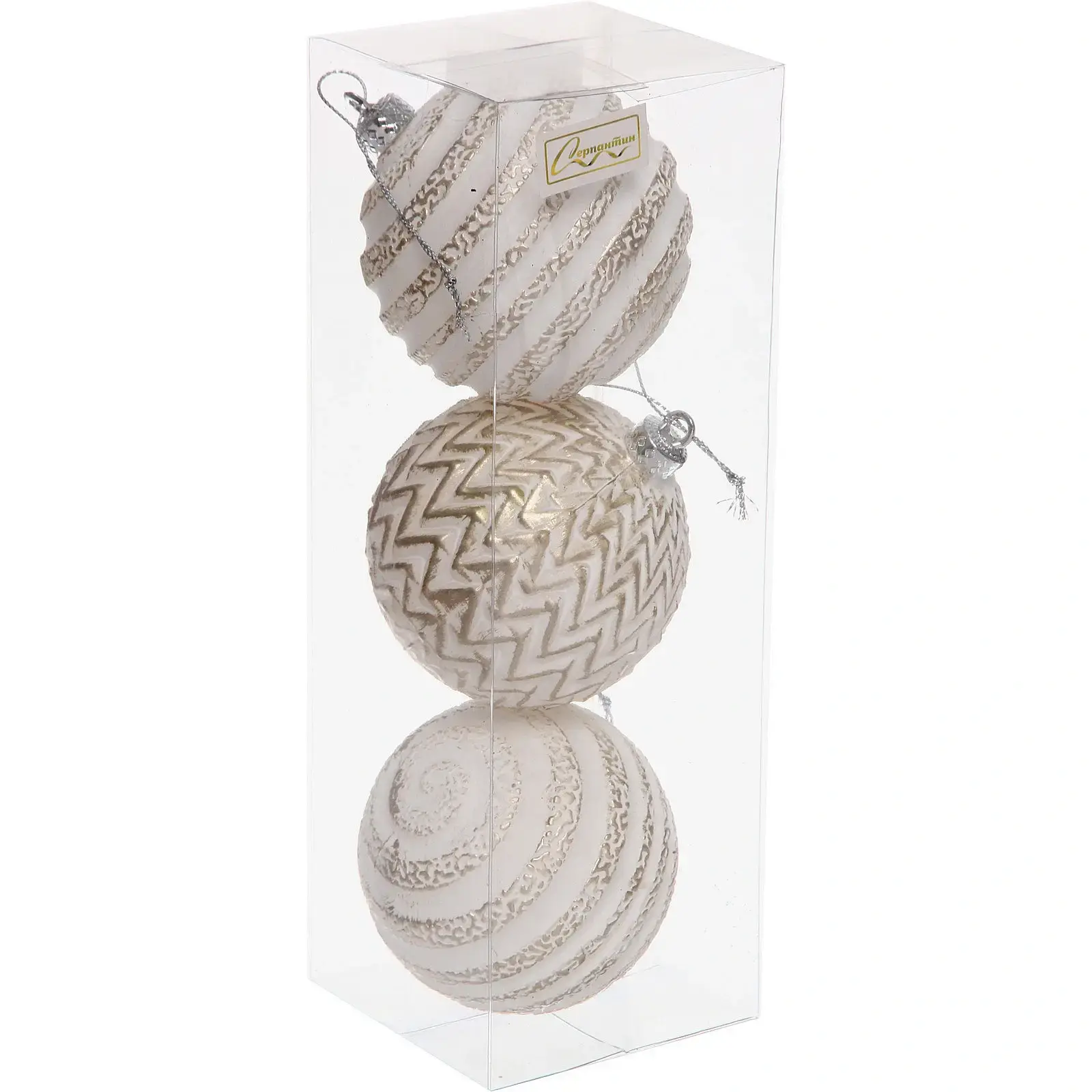 Новогодние шары VERSAILLES «Лесное таинство» 8 см (набор 3 шт), Белый/шампань, пластик, для елки и декорирования