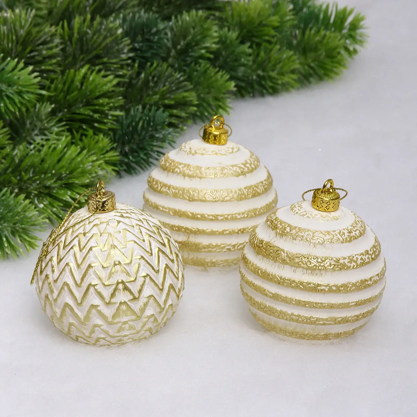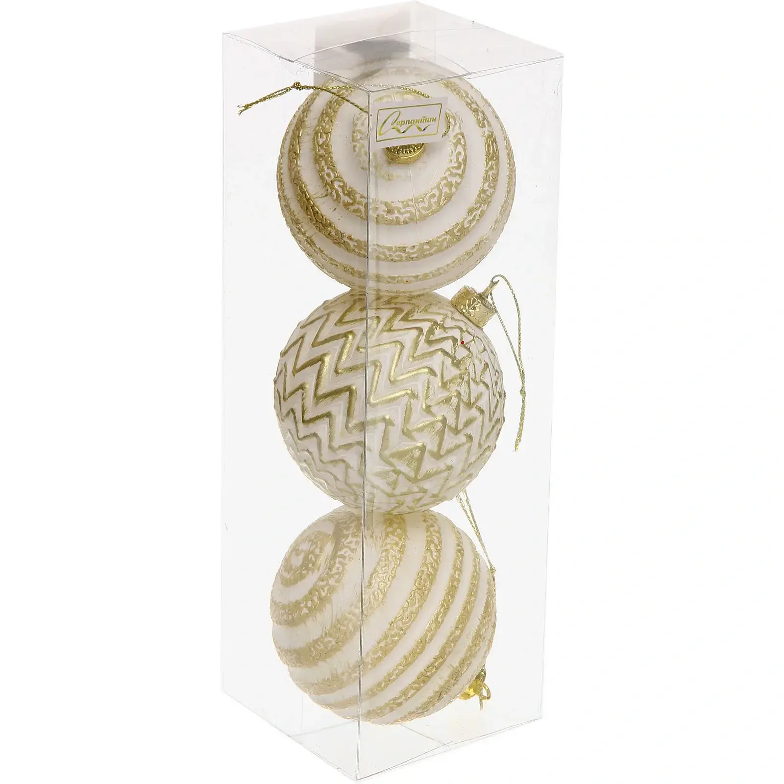 Новогодние шары VERSAILLES «Лесное таинство» 8 см (набор 3 шт), Белый/золото, пластик, для елки и декорирования