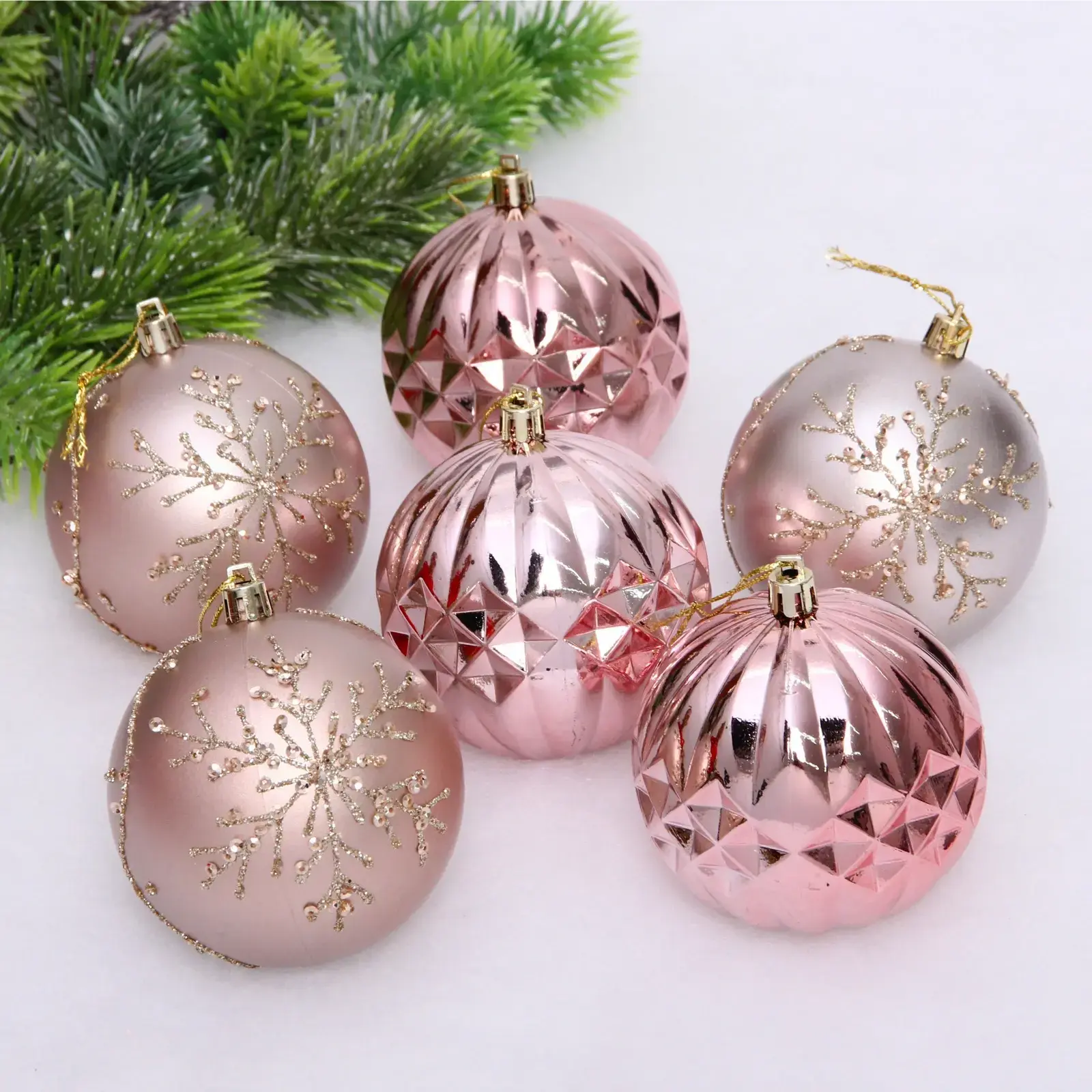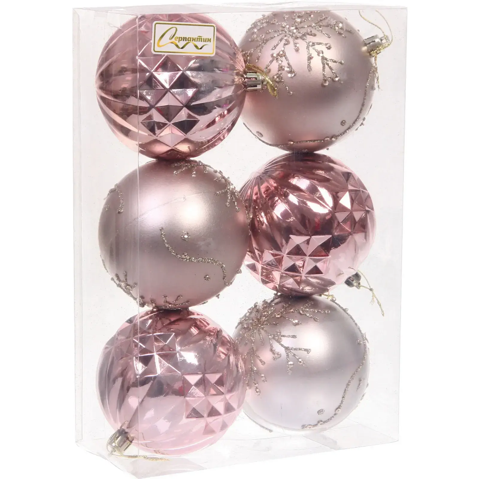 Погрузитесь в атмосферу уюта и волшебства вместе с этим набором из 6 пластиковых елочных шаров диаметром 8 см в оттенках розового золота и шампанского. Идеально подходят для украшения новогодней ёлки и интерьера, создавая элегантный и праздничный настрой.