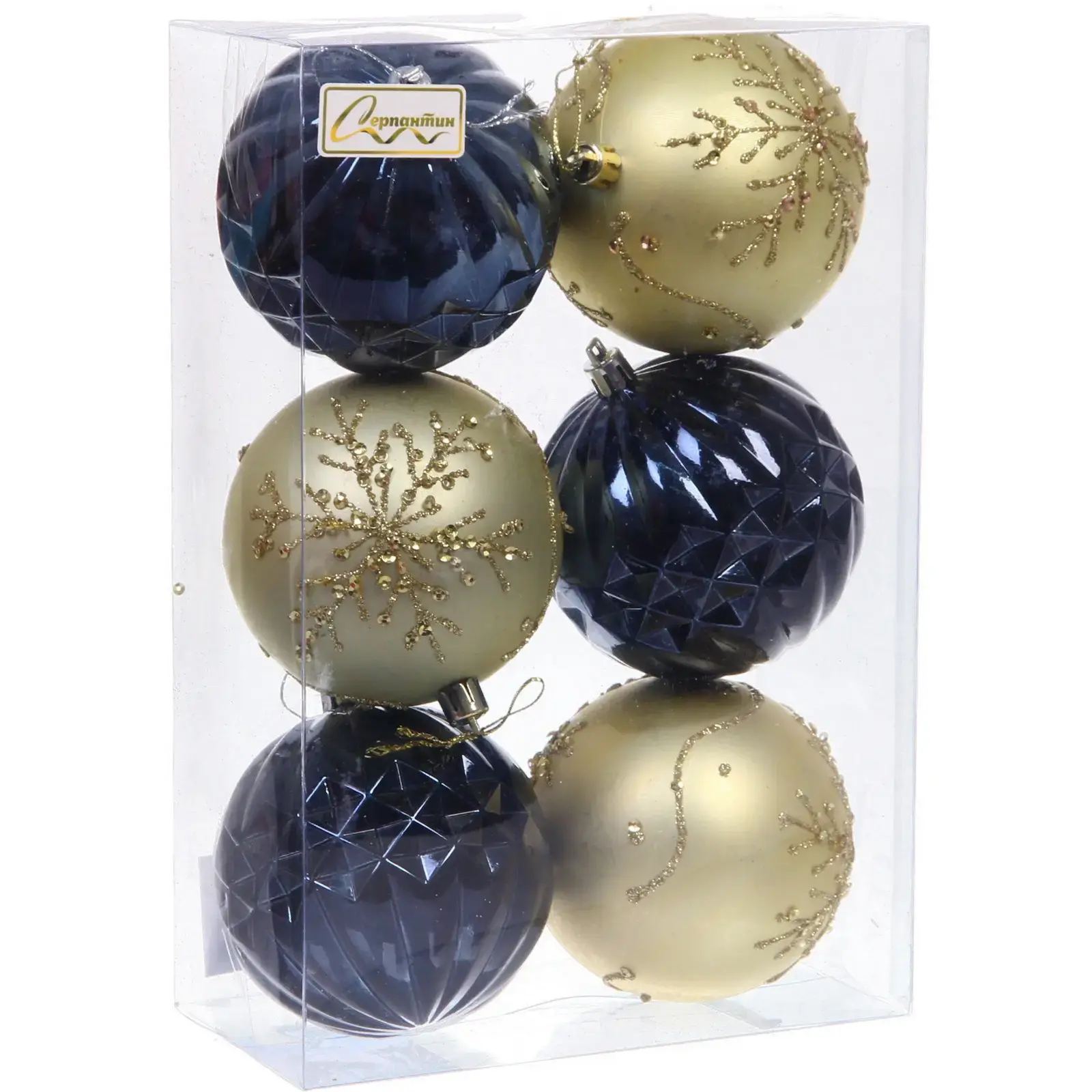 Шары имеют диаметр 8 см и представлены в двух основных цветах: темно-синем и золотом. Каждый шар украшен оригинальными узорами, что придаёт им особый шарм. Упакованы в прозрачную коробку, шары легко хранить и использовать в следующем году. Подарите себе и своим близким незабываемые моменты с новогодними шарами «Волшебный бал»!
