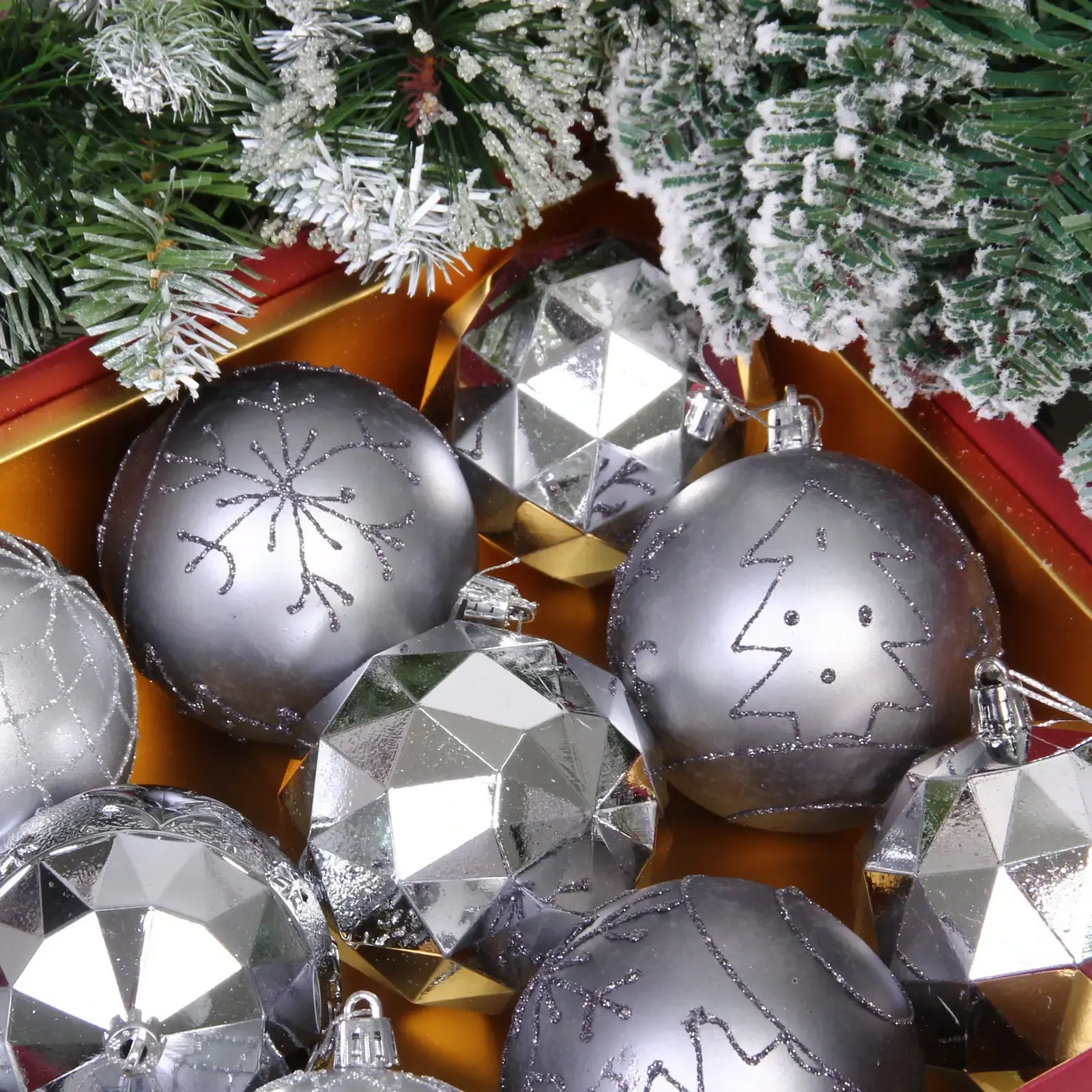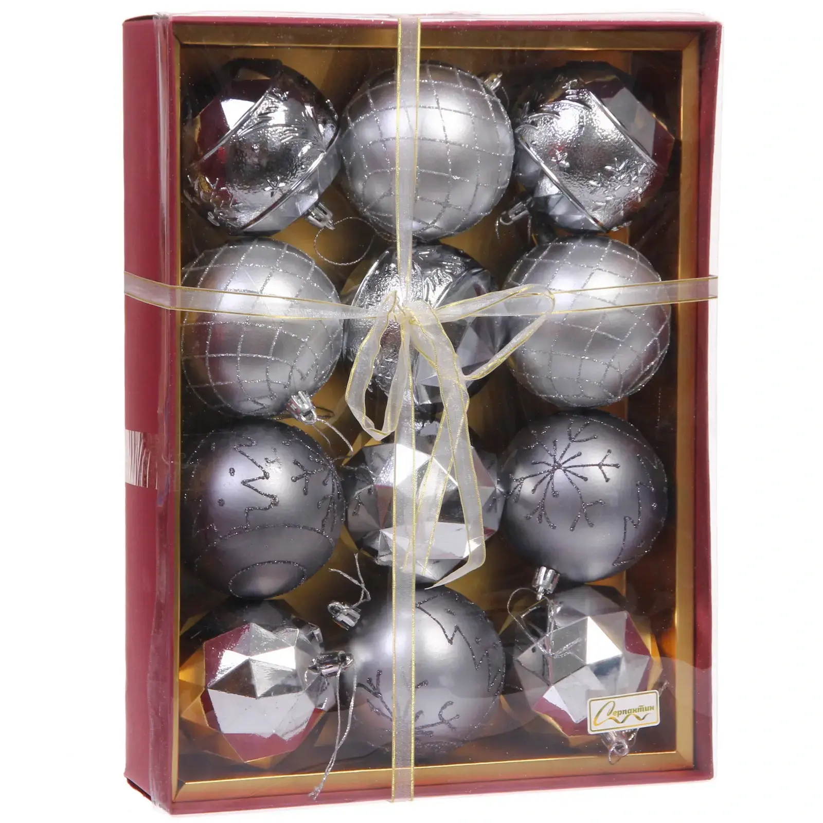 В набор входят 12 шаров, каждый из которых имеет диаметр 8 см. Материал — прочный пластик, что делает их легкими и безопасными для использования в любом доме. Цветовая гамма включает графитовые и серебристые оттенки, что позволяет легко сочетать их с другими элементами декора. Подарите себе и своим близким атмосферу настоящего новогоднего волшебства с этими изысканными шарами!