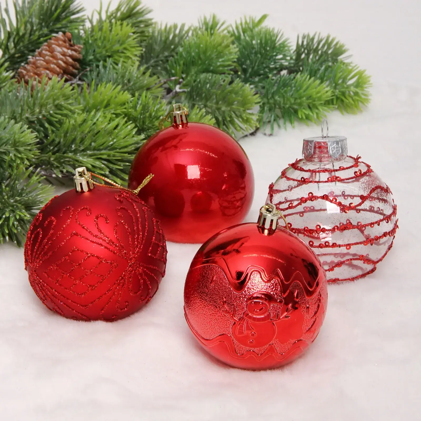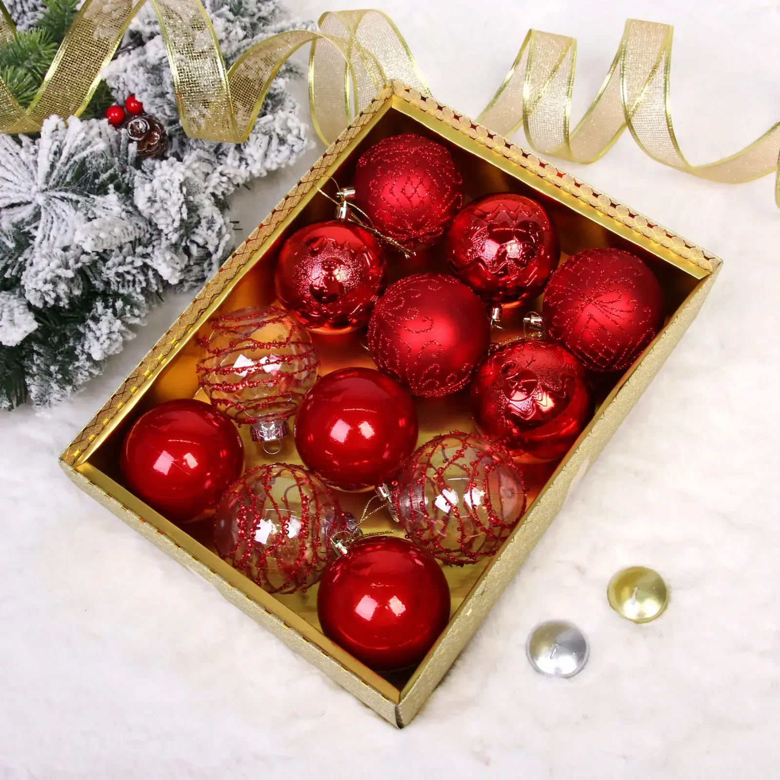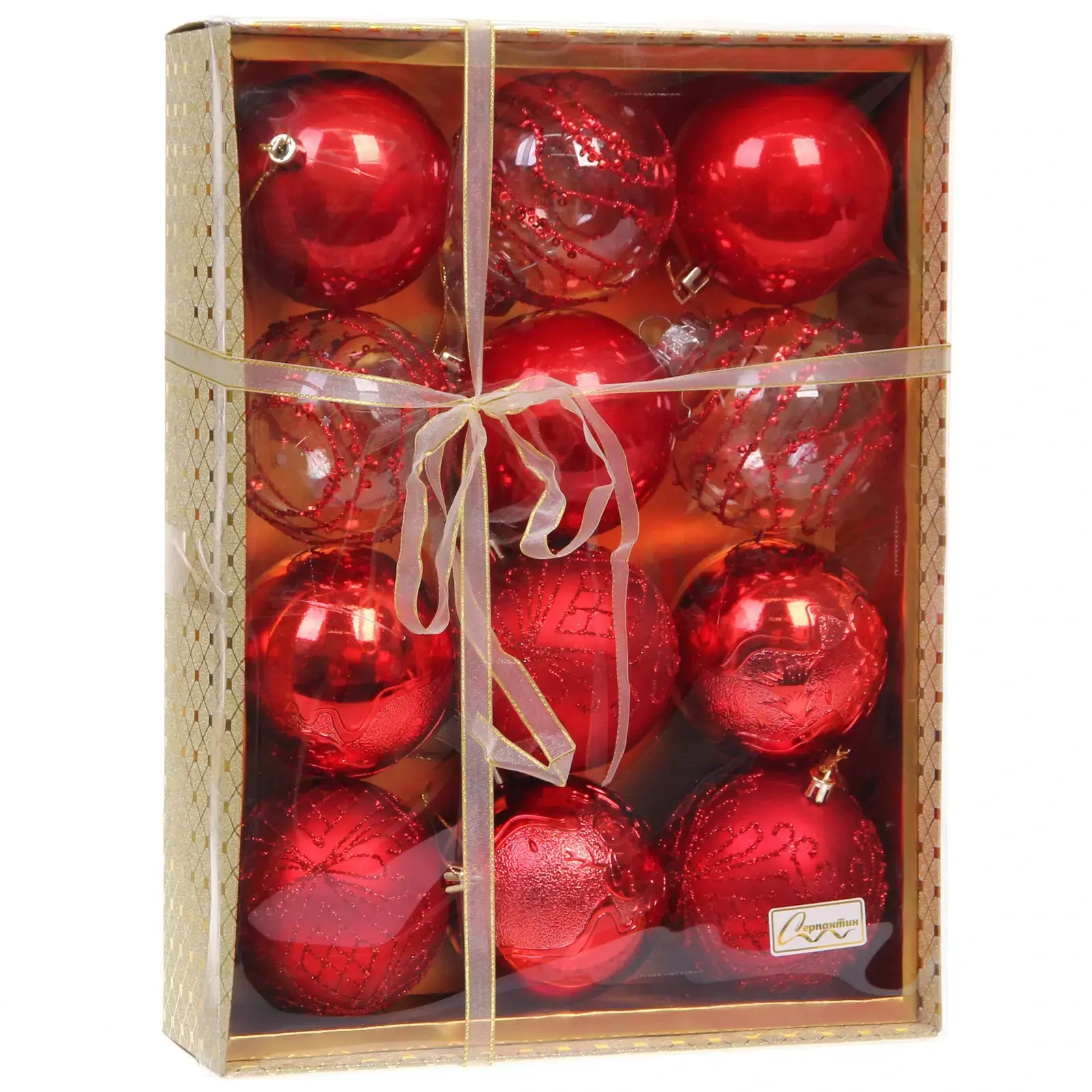 Новогодние шары «Волшебство ночи» 8 см (набор 12 шт), Красный, пластик, для елки и декорирования