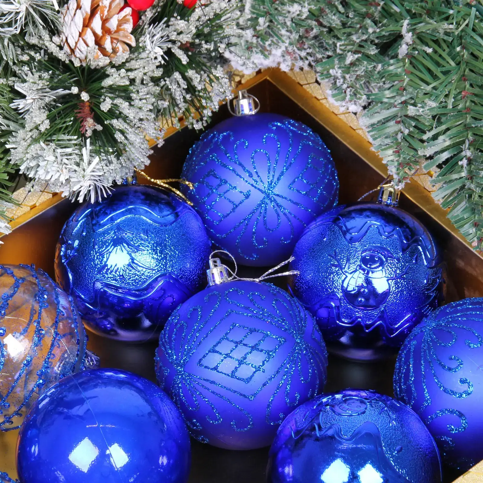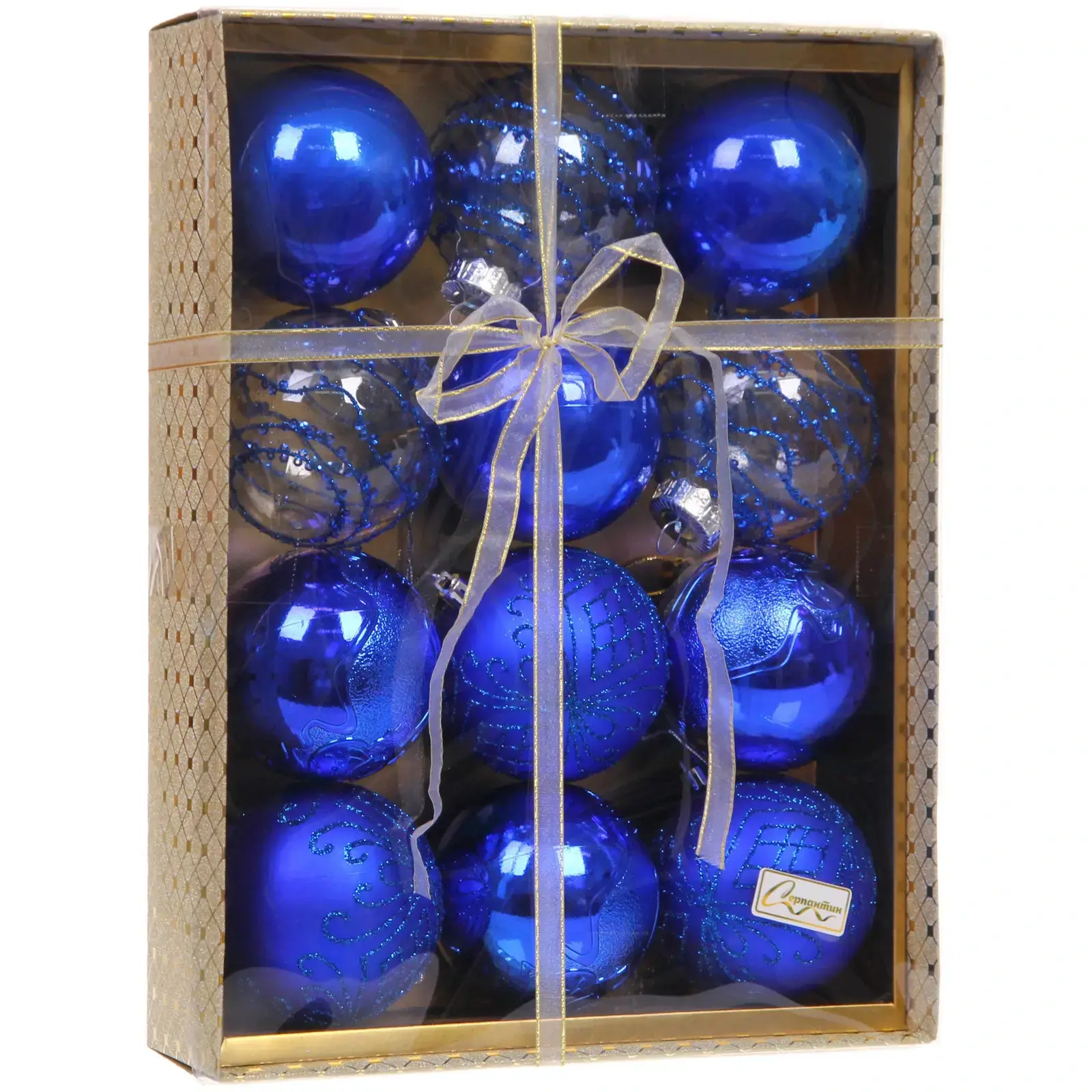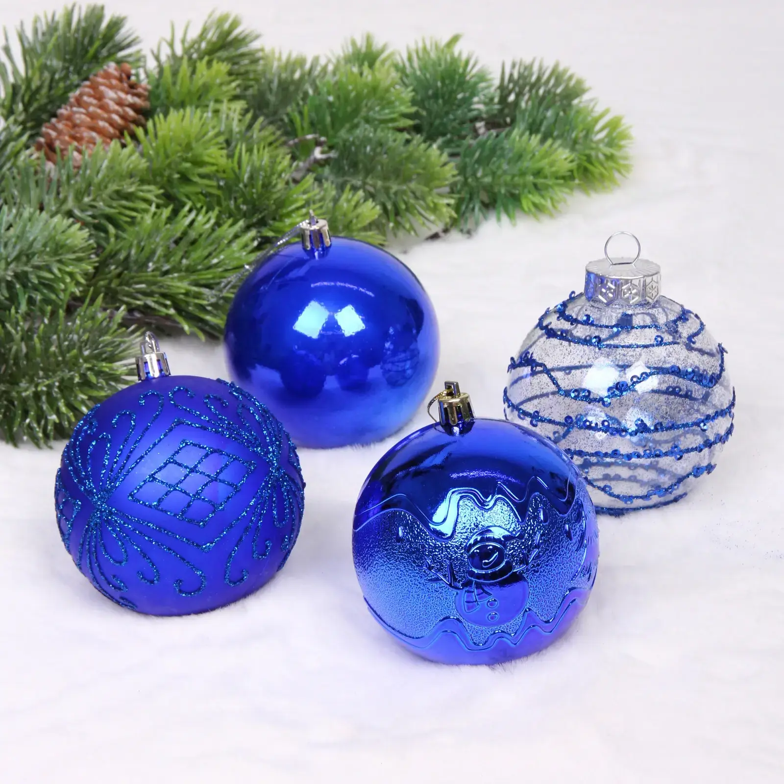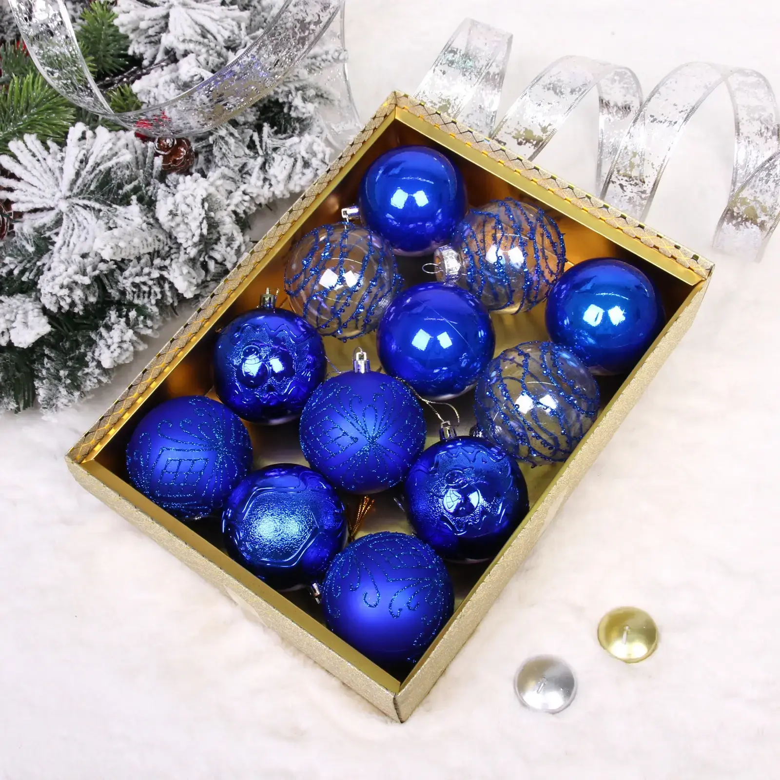 Новогодние шары «Волшебство ночи» 8 см (набор 12 шт), Синий, пластик, для елки и декорирования