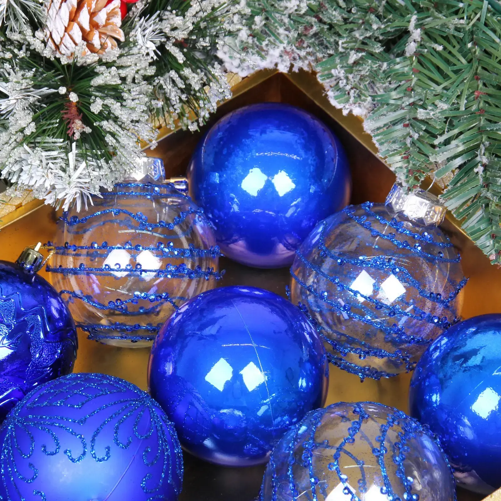 Шары диаметром 8 см идеально подходят для украшения елок среднего размера. В наборе из 12 элементов каждый шар оснащен надежным металлическим креплением, что обеспечивает простоту подвешивания.