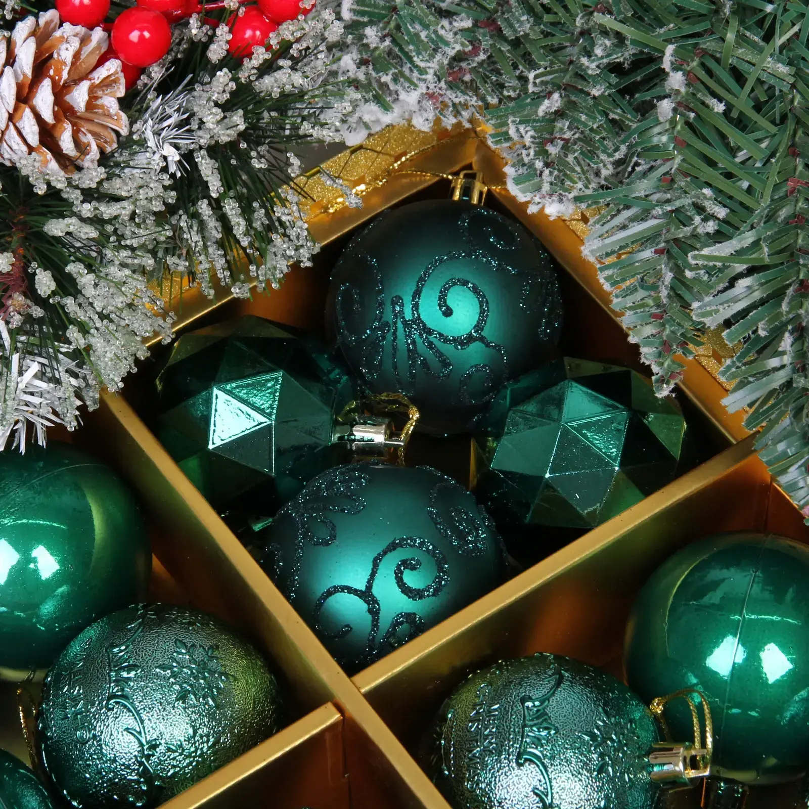 Этот набор из 16 елочных украшений идеально подходит для украшения любой новогодней елки. Благодаря разнообразию форм, оттенков зеленого и декоративных узоров, вы получите яркое и стильное украшение, которое подчеркнет уют и праздничное настроение.