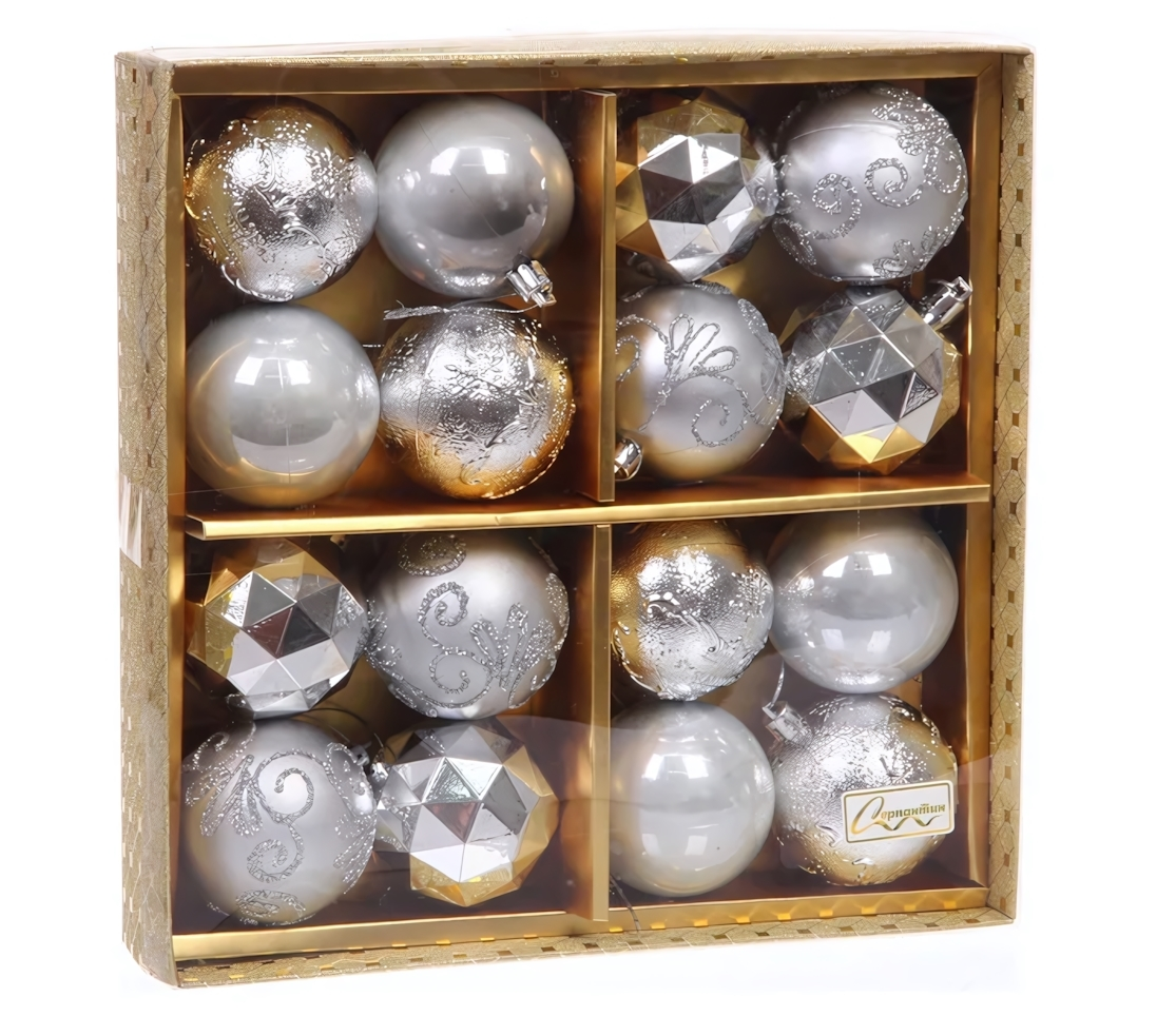 Подарите своей елке неповторимый блеск с набором новогодних шаров «Зимняя вечеринка». Сочетание серебристых и золотых оттенков создает атмосферу торжества и тепла, а разнообразие форм — от классических круглых до многогранных — делает украшение более интересным и динамичным. Этот набор поможет легко оформить праздничный интерьер, привнеся в него гармонию и изысканность.