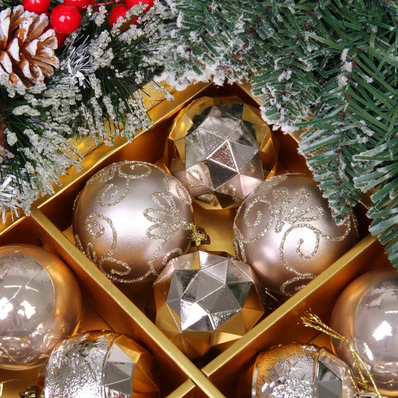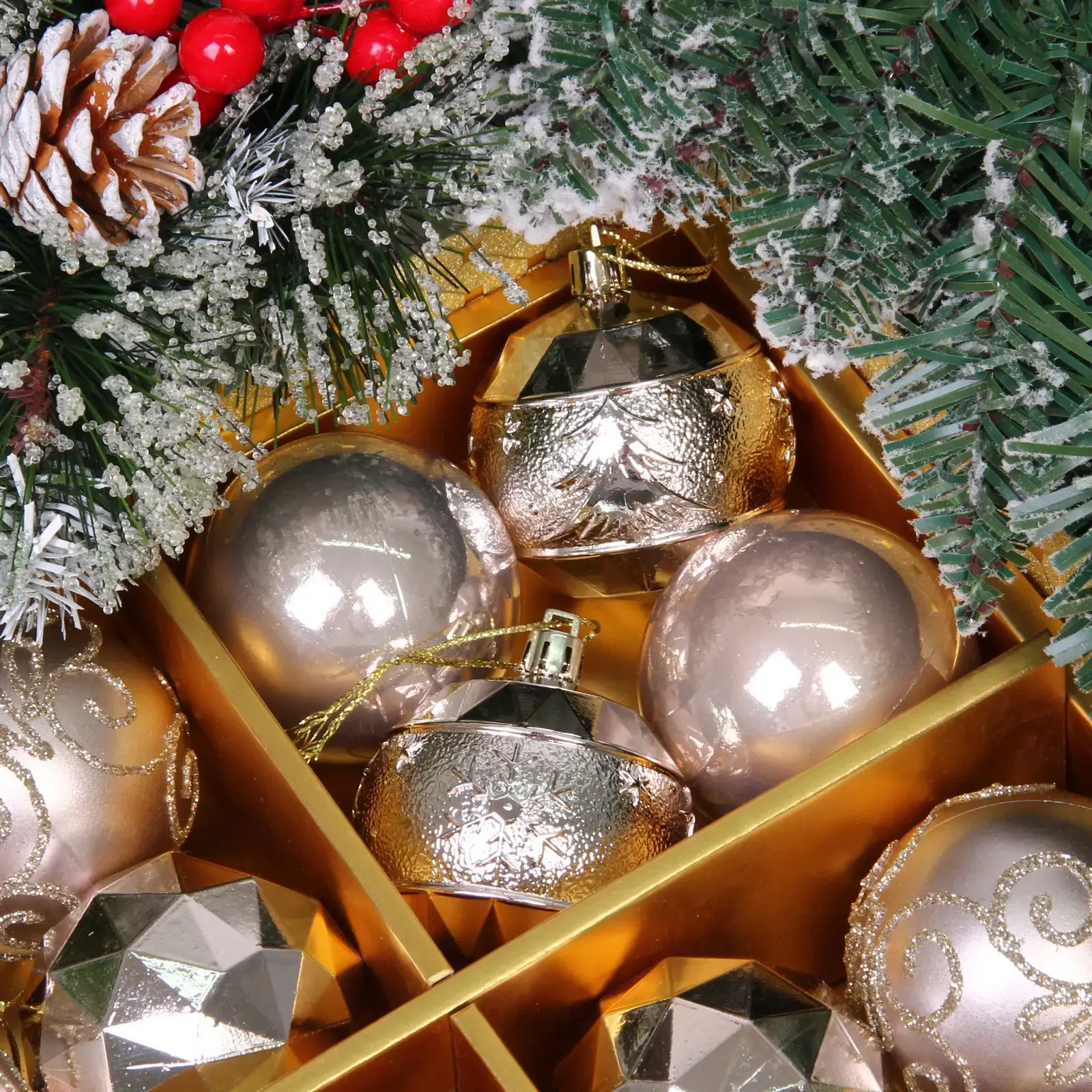 Набор из 16 разноформатных шаров с изысканными узорами — идеальное решение для стильного новогоднего декора. Пластиковые украшения с золотистыми и серебристыми акцентами преобразят вашу ёлку за считанные минуты.