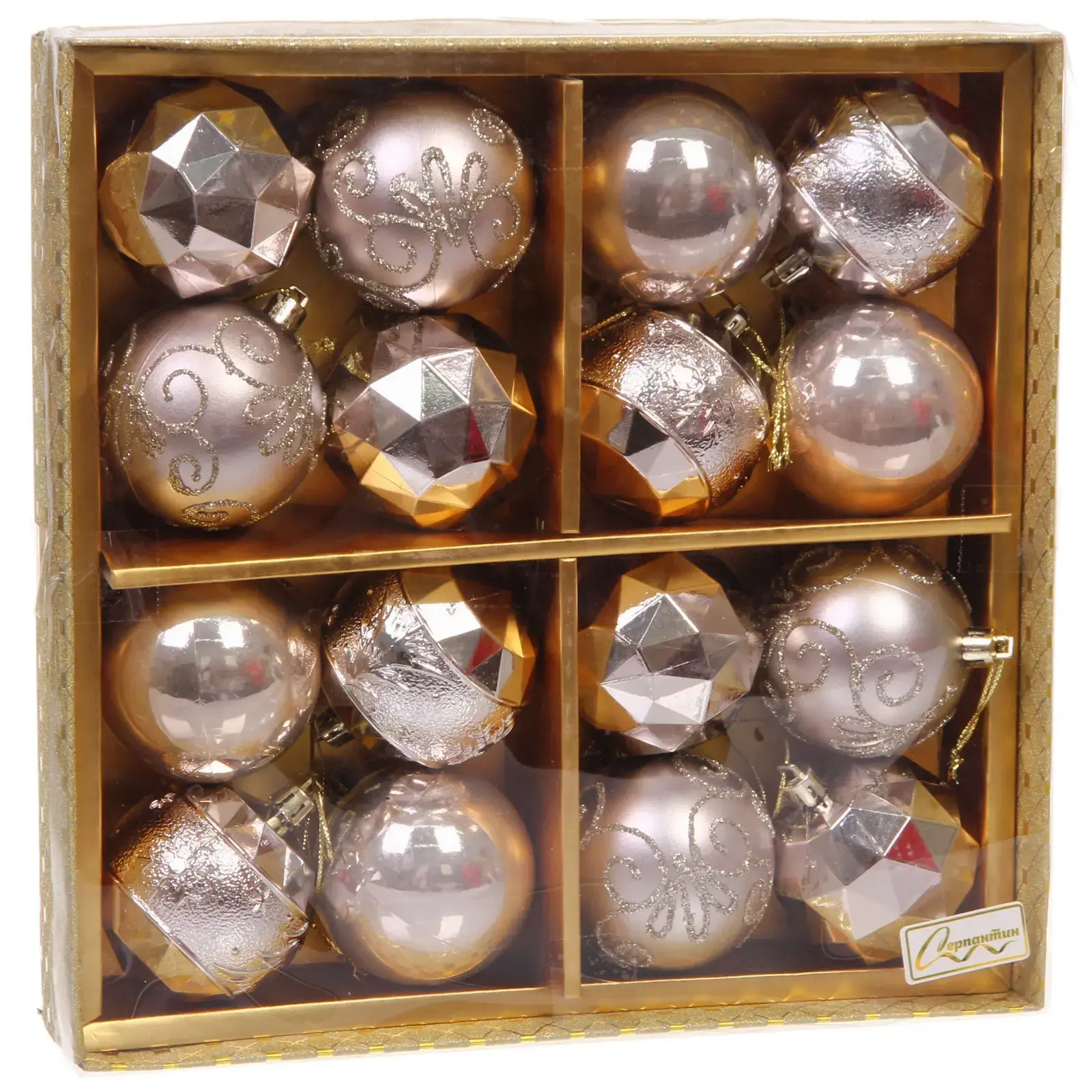 Новогодние шары «Зимняя вечеринка» 6 см (набор 16 шт), Шампань, пластик, для елки и декорирования