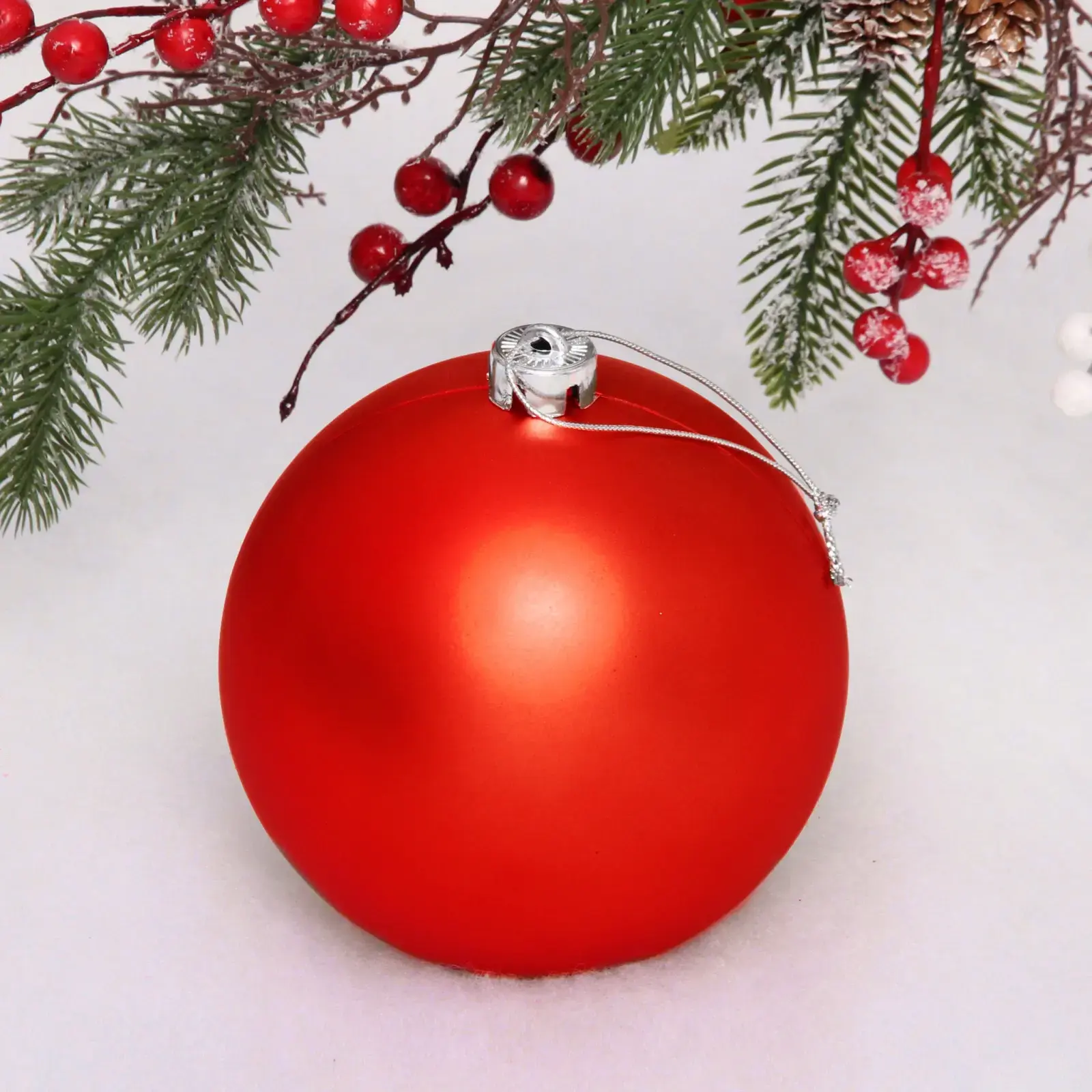 Новогодний шар диаметром 15 см в матовом красном цвете — это идеальный элемент для украшения вашего дома или офиса в новогодние праздники. Он не только добавляет яркие акценты в декор, но и создает атмосферу уюта и волшебства. Этот шар станет отличным дополнением к вашей новогодней елке или же самостоятельным украшением для праздничного стола.