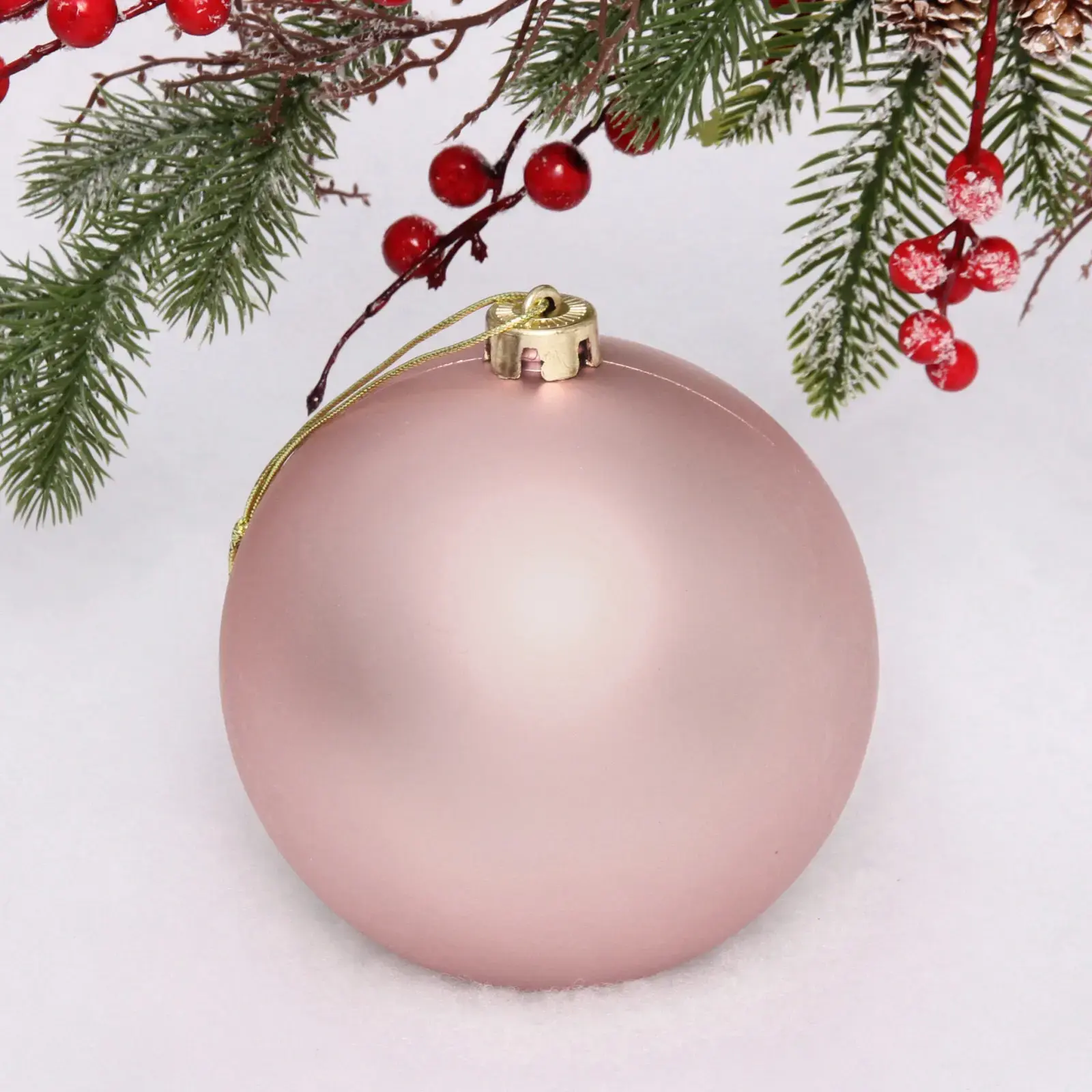 Размер шара — 15 см, материал — пластик, цвет — шампань с розовым отливом, крепление выполнено в золотистом цвете. Такая комбинация делает новогодний шар не только красивым, но и практичным элементом вашего декора.