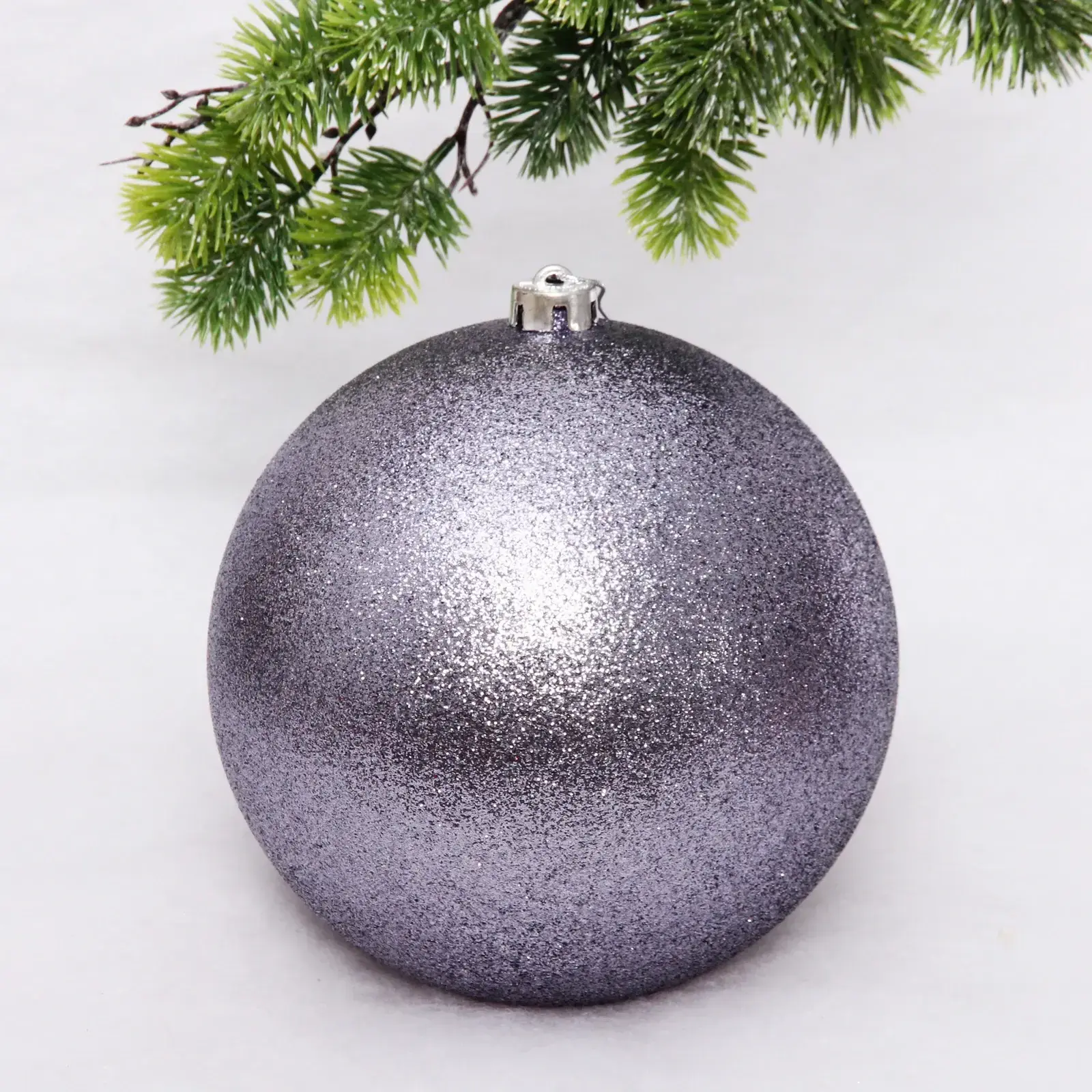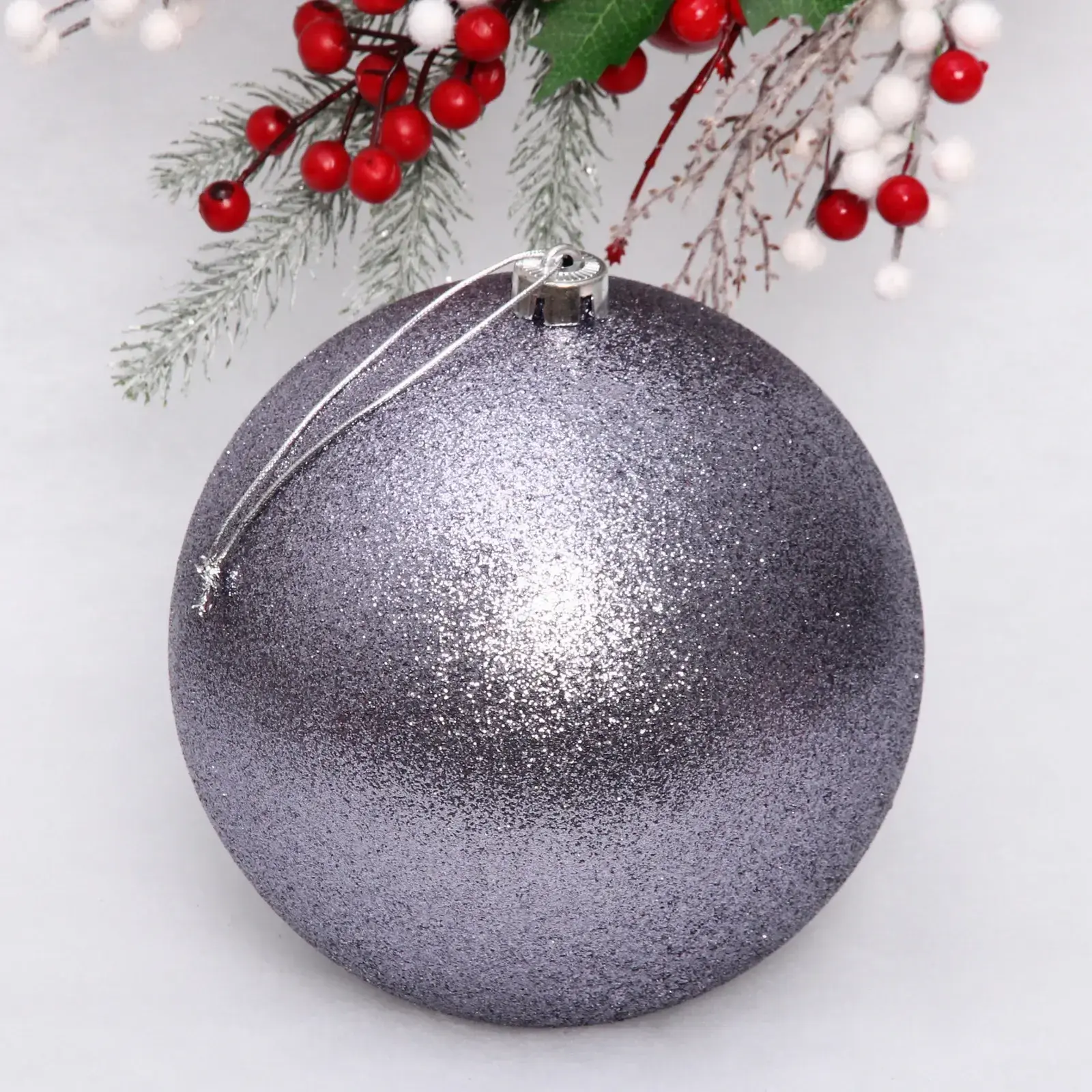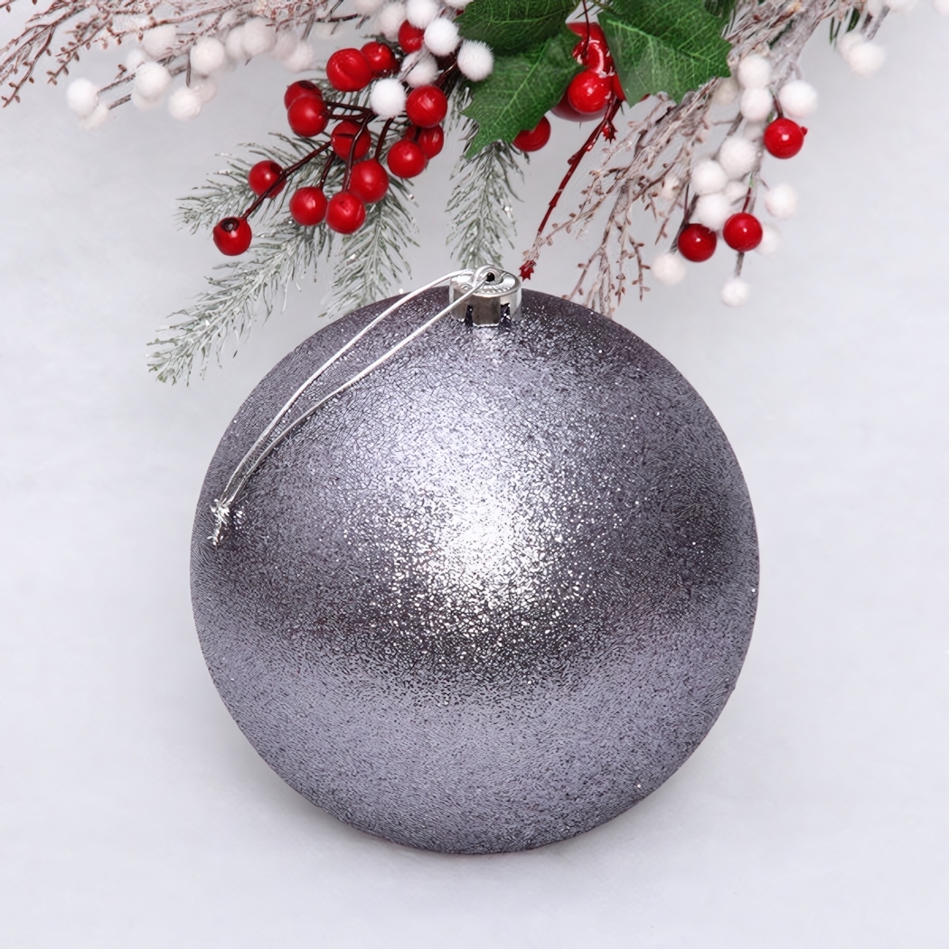 Этот великолепный новогодний шар диаметром 20 см в графитовом цвете добавит изысканности и волшебства в ваш праздничный декор. Его блестящая поверхность с эффектом глиттера привлекает внимание и создает атмосферу уюта и радости. Подвешивая этот шар на елку, вы не только украсите ее, но и создадите незабываемую атмосферу для всей семьи.
