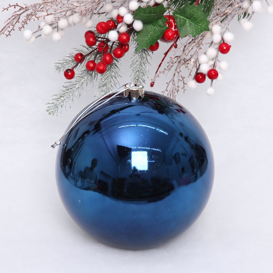 Этот великолепный новогодний шар диаметром 20 см в насыщенном сапфировом цвете добавит яркости и волшебства в ваш праздничный декор. Его гладкая, блестящая поверхность отражает свет, создавая эффектный визуальный акцент на вашей елке или в интерьере. Подарите себе и своим близким частичку новогоднего чуда!