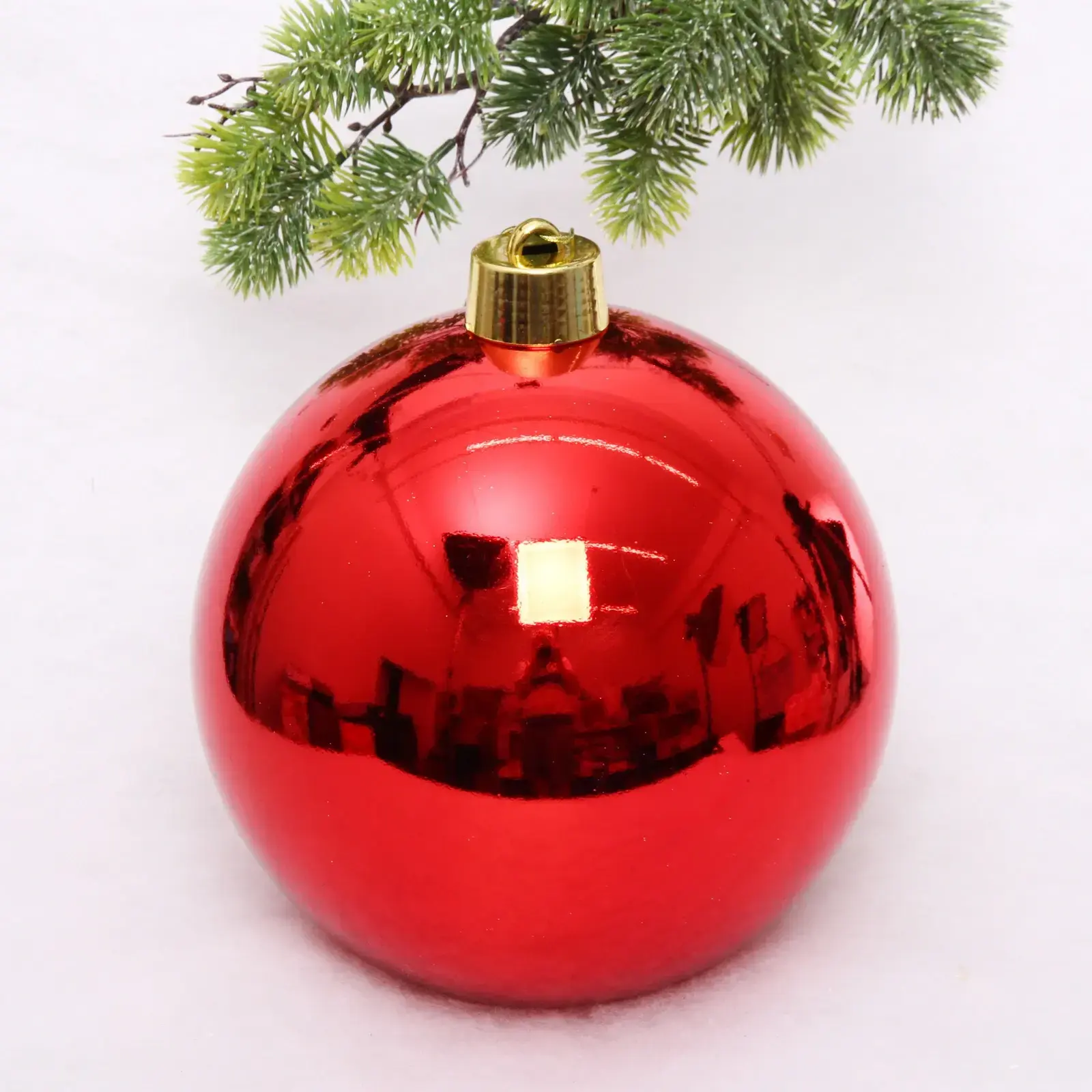 Шарик легко подвешивается благодаря золотистой крепёжной части, что делает его удобным в использовании. Он идеально подходит для украшения как домашних елок, так и офисных пространств, добавляя яркие акценты в любой интерьер. Вы можете комбинировать его с другими шарами разных цветов и размеров, создавая собственные уникальные композиции.