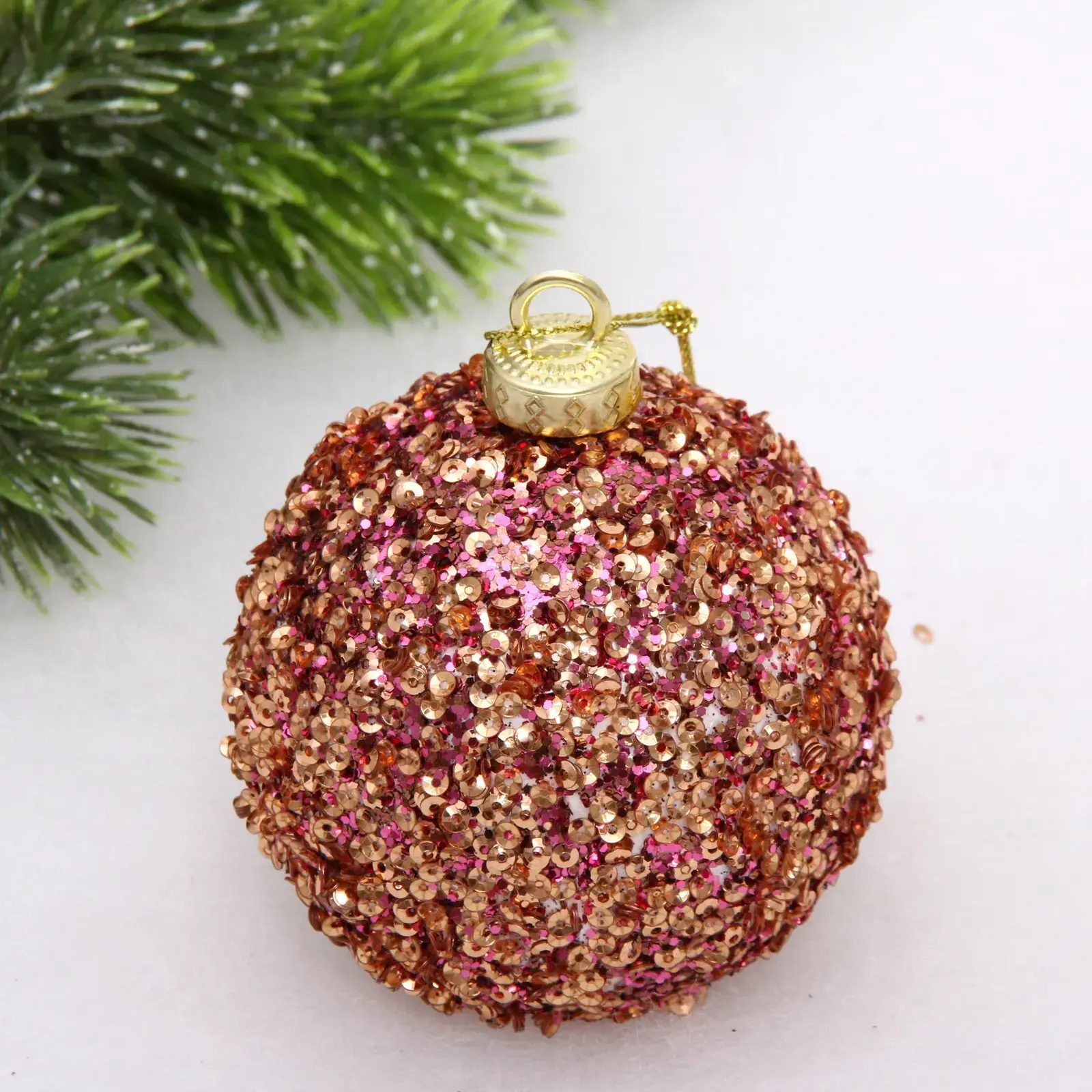 Размер шара составляет 8 см в диаметре, что делает его универсальным для различных стилей оформления. Розовое золото в сочетании с блестками разных оттенков придаст вашему декору уникальность и стиль. Упаковка из прозрачного пластика позволяет видеть шар и защищает его от повреждений, что делает его идеальным для хранения.