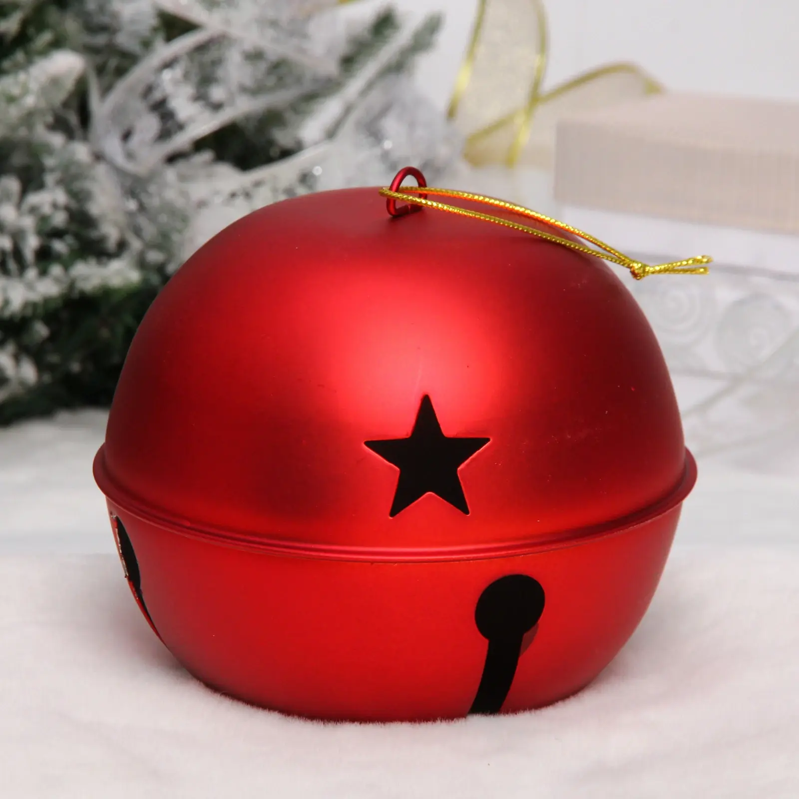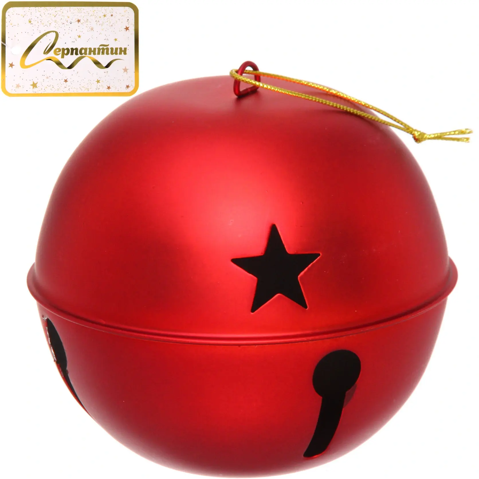 Диаметр — 15 см, материал — металл с матовым покрытием. Отгружается один колокольчик красного цвета. Поверхность имеет аккуратные прорези и отверстия, создающие аутентичный вид рождественского бубенчика. Красный оттенок символизирует тепло, радость и традиции, а золотистый шнур подчеркивает праздничный стиль.