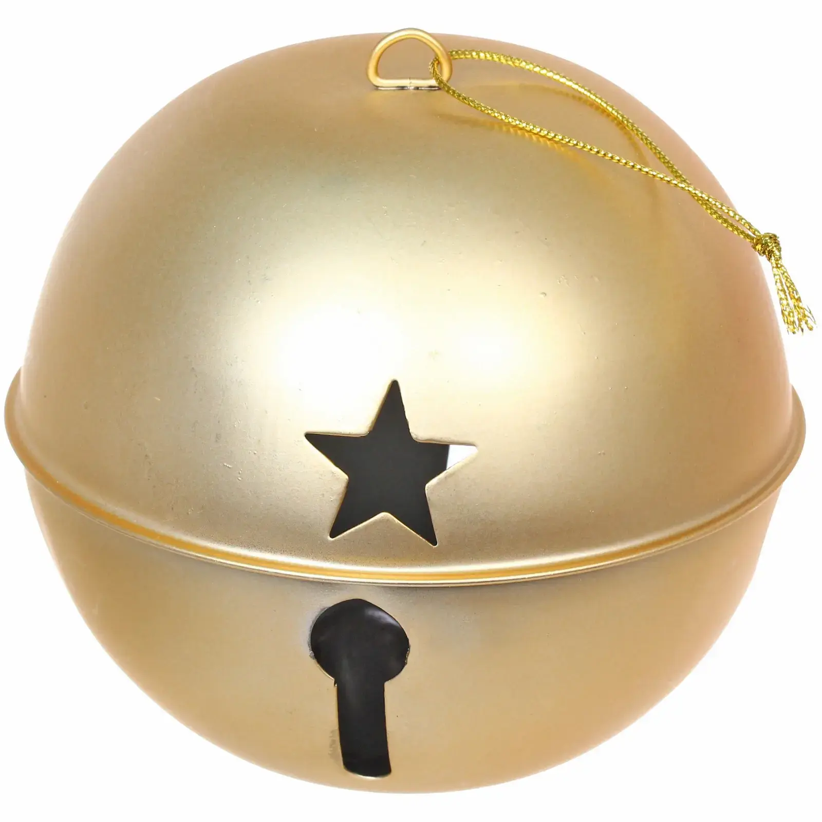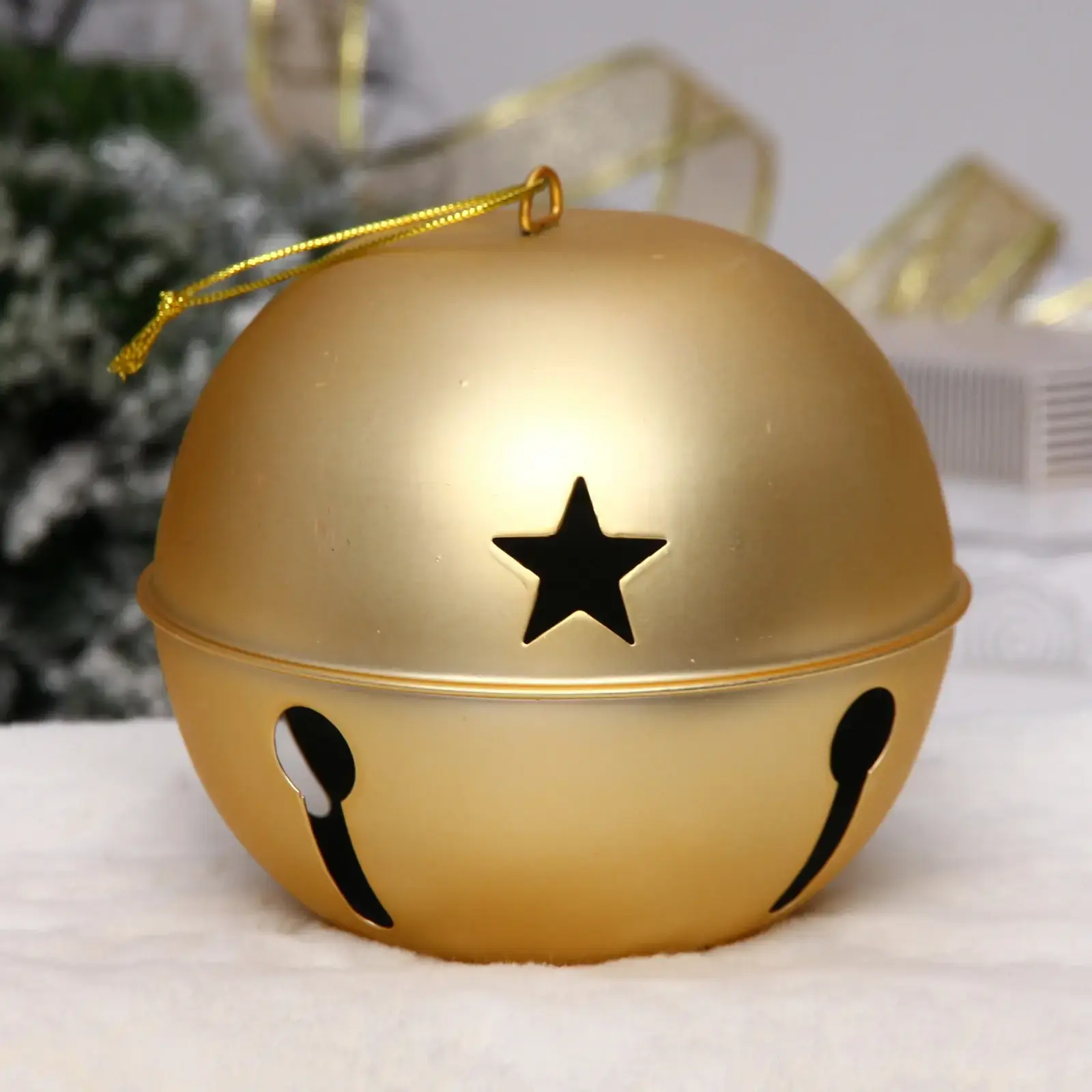 Новогодний шар "Бубенчик" 15см, золото, металл, с рисунком звезды