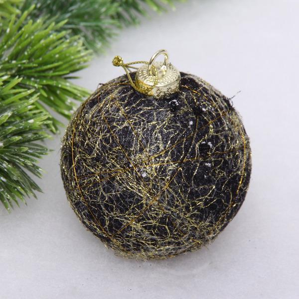 Добавьте изысканности и тепла вашему новогоднему интерьеру с этим элегантным шаром диаметром 8 см. Чёрный фон с золотыми и белыми декоративными элементами создаёт эффект зимнего снегопада, а блеск нитей и аккуратная петелька для подвешивания подарят особое очарование каждой веточке вашей ёлки.