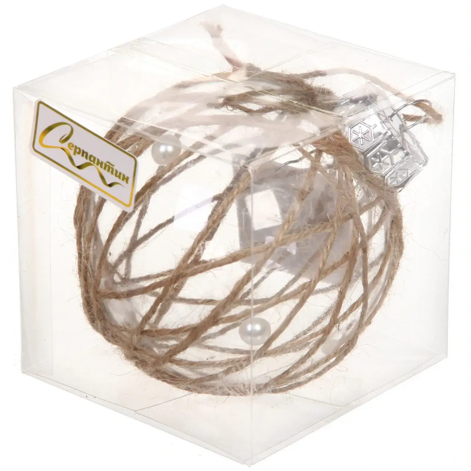 Шар имеет прозрачную сферическую форму и украшен белыми пластиковыми бусинами, что добавляет ему изысканности. Пластиковая крышка серебристого цвета с рельефным узором завершает его элегантный вид. Этот шар станет не только украшением, но и отличным подарком для ваших близких, который они оценят по достоинству.