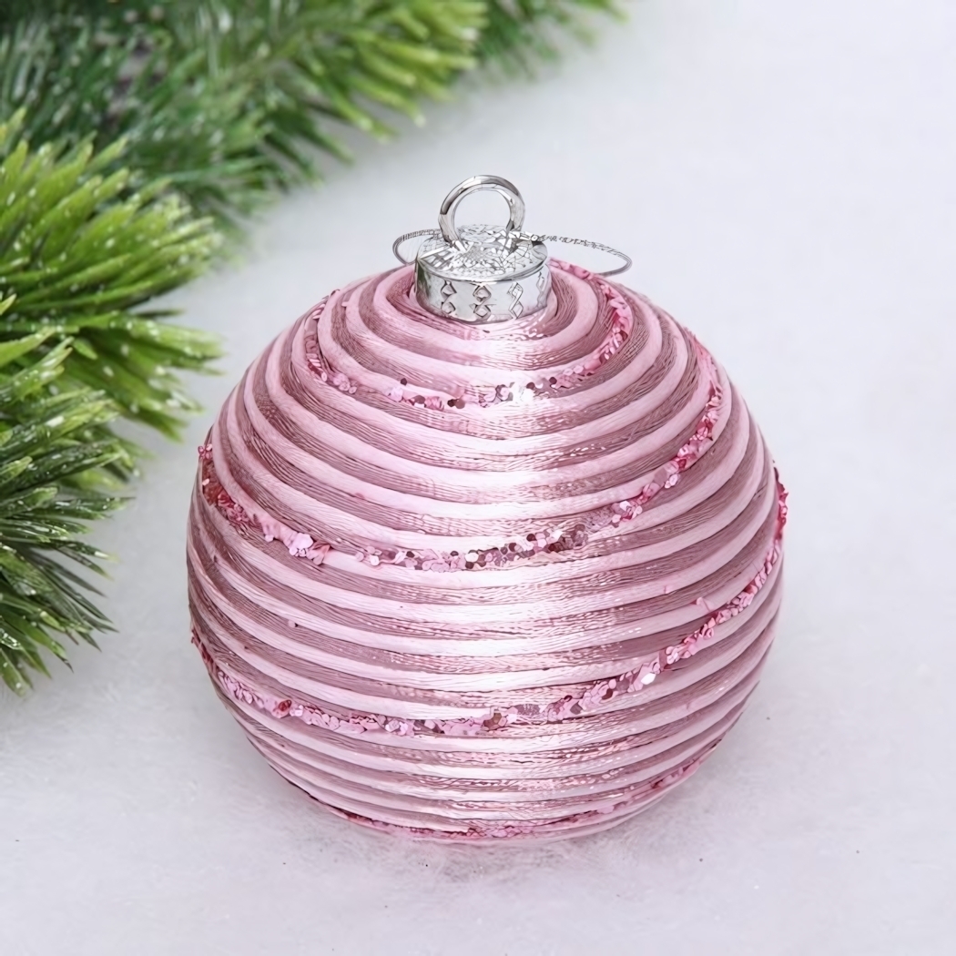 Этот изящный шар в цвете розового золота поможет создать атмосферу роскоши и уюта в новогоднем интерьере. Переплетение блестящих нитей на поверхности придает украшению объем и сияние, а теплый оттенок гармонично сочетается как с классическими, так и с современными праздничными композициями.