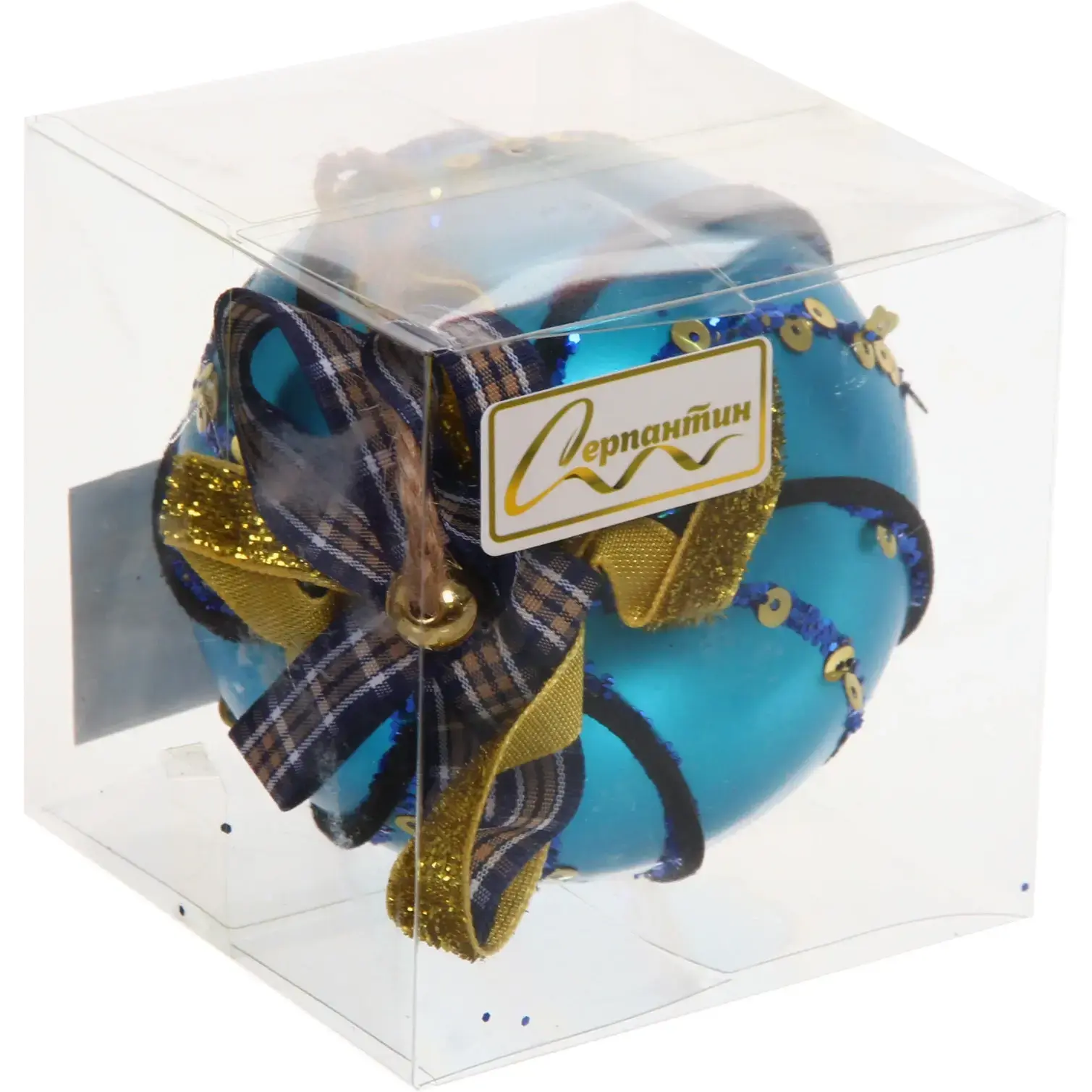 Шар выполнен из качественного пластика, что делает его легким и безопасным для детей. Его яркий голубой цвет и золотистые украшения прекрасно сочетаются с другими новогодними элементами, создавая гармоничный и стильный декор. Упаковка из прозрачного пластика позволяет удобно хранить шар после праздников, сохраняя его в идеальном состоянии до следующего года.