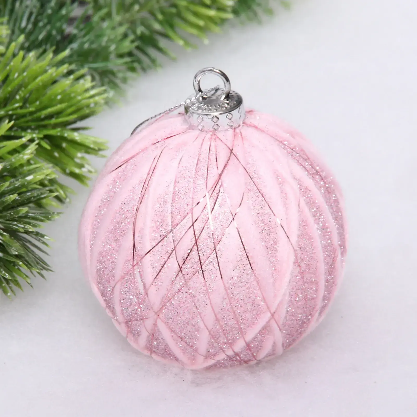 Создайте атмосферу волшебства в вашем доме с новогодним шаром «Волшебные нити». Этот шар диаметром 8 см выполнен в нежном розовом цвете и украшен блестками, что придаёт ему особый шарм и элегантность. Он станет идеальным дополнением к вашей новогодней ёлке или стильным акцентом в праздничном декоре.