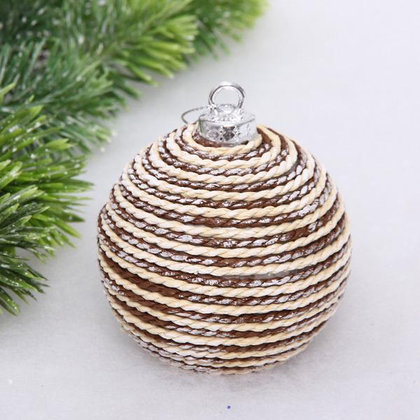 Добавьте в праздничный декор изысканности с ёлочным шаром "Зимнее плетение" диаметром 8 см. Его оригинальный дизайн с аккуратными витками бежевого и коричневого шнура, дополненными серебристыми штрихами, создаёт тёплую атмосферу зимнего уюта и гармонично вписывается в любую новогоднюю композицию.