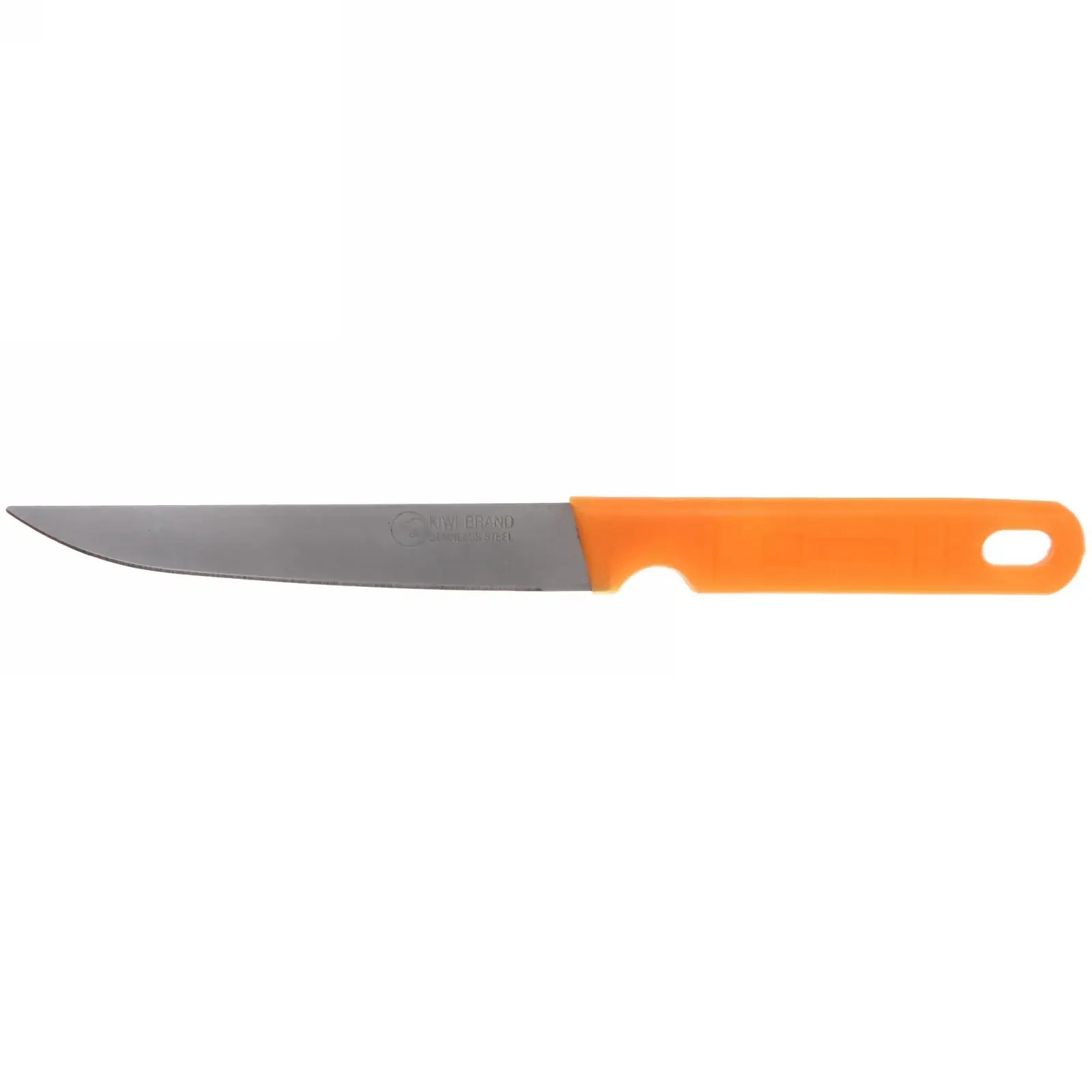 Этот кухонный нож с длиной лезвия 11,5 см станет незаменимым инструментом для нарезки и обработки продуктов. Его оранжевая пластиковая ручка обеспечивает комфортный захват, а гладкое металлическое лезвие позволяет легко справляться с любыми задачами на кухне. Нож идеально подходит для нарезки мяса, рыбы, овощей и фруктов, что делает его универсальным аксессуаром для каждого домохозяйства.