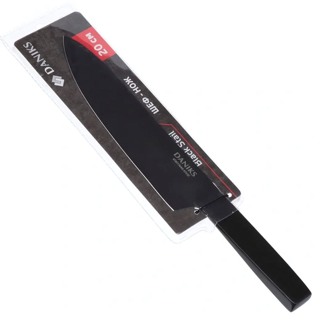 Шеф-нож Daniks "Black Series", 20 см, нержавеющая сталь, черное лезвие и ручка