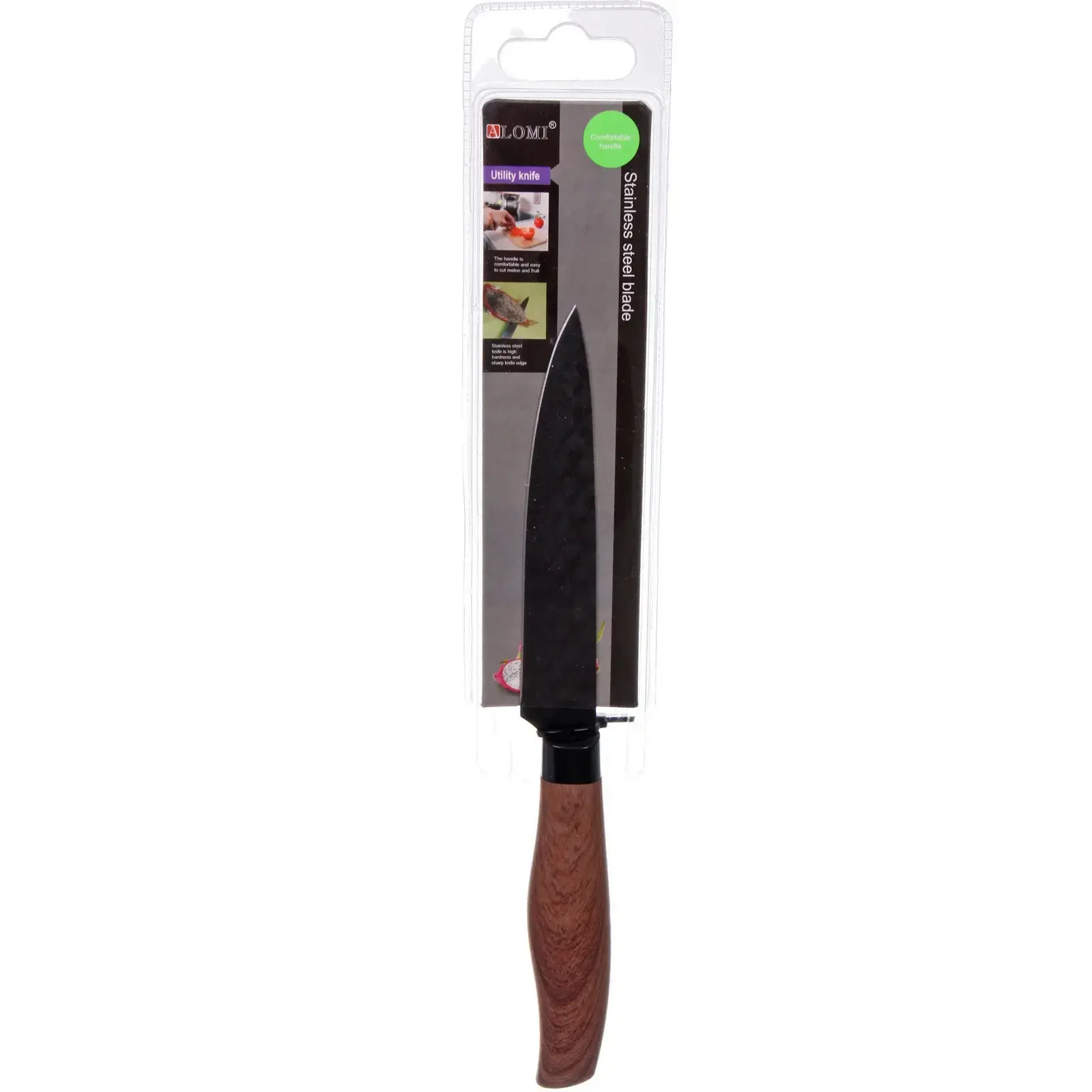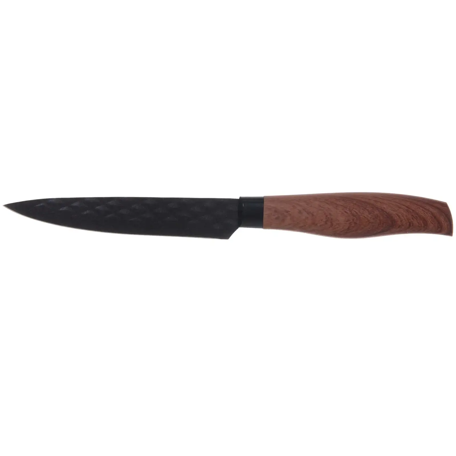 Овощной нож «МАТТЕО» с длиной лезвия 12 см станет идеальным инструментом для нарезки овощей и фруктов. Его черное лезвие из нержавеющей стали обеспечивает долговечность и остроту, а рукоятка, выполненная из дерева, гарантирует удобство и надежный хват. Этот нож идеально подходит для любой хозяйки, которая ценит качество и функциональность на кухне.