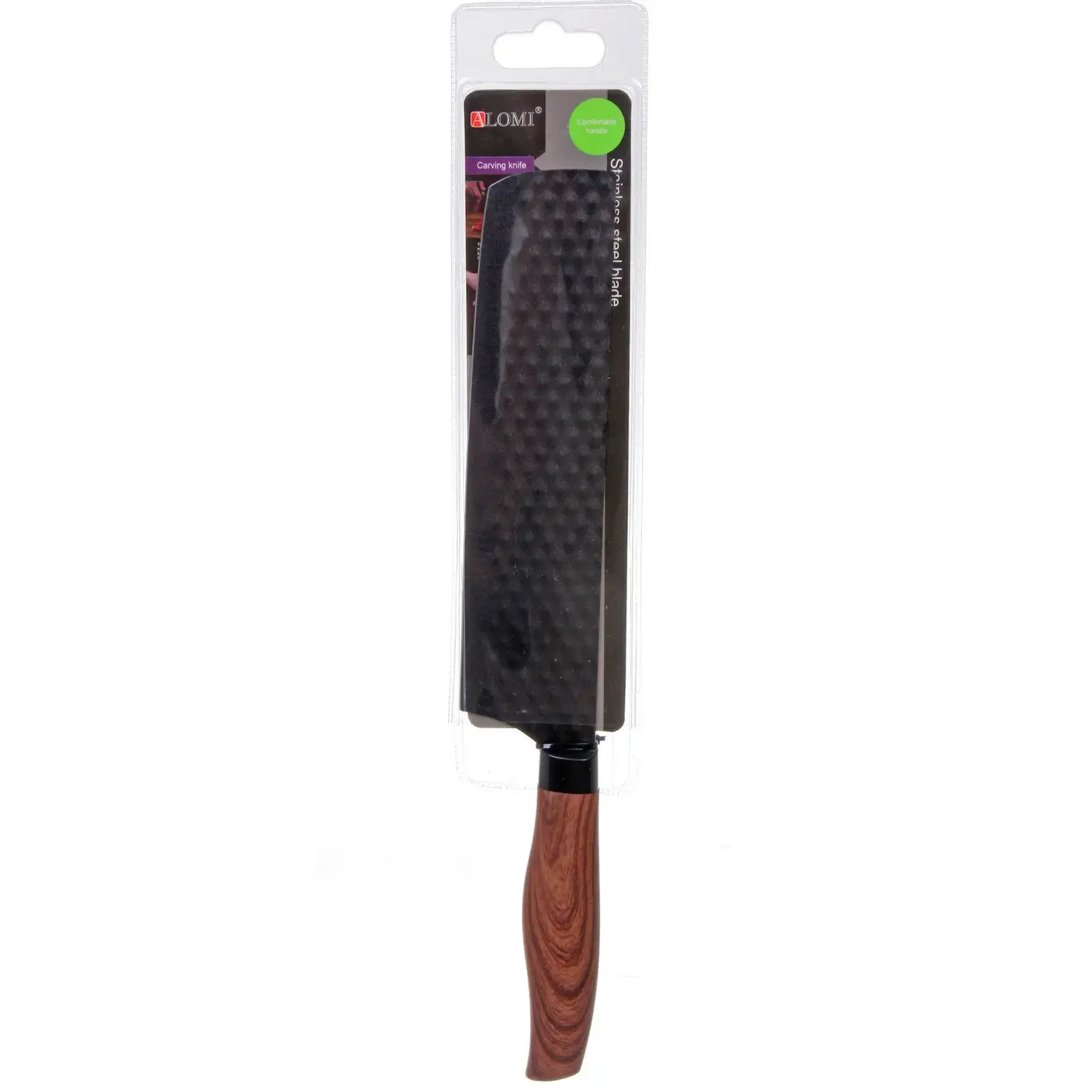 Нож изготовлен из высококачественного металла и пластика, что гарантирует долговечность и легкость в уходе. Его стильный черный цвет и текстурированная поверхность делают его не только функциональным, но и эстетически привлекательным. Упаковка ножа также продумана до мелочей, что позволяет удобно хранить его и демонстрировать на витрине.