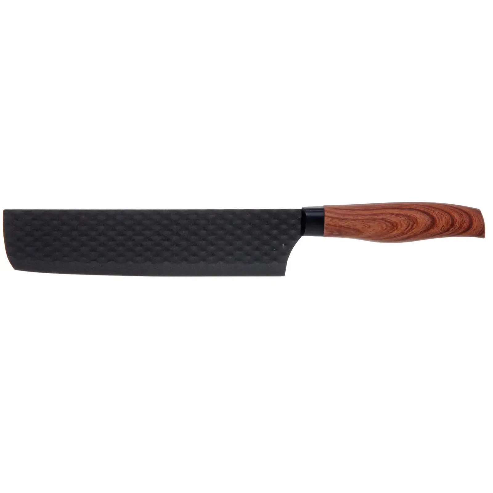 Нож сантоку предназначен для нарезки и разделки различных продуктов, включая овощи, мясо и рыбу. Его длина в 19,5 см обеспечивает оптимальный баланс между маневренностью и эффективностью. Благодаря удобной деревянной ручке, нож легко лежит в руке, что позволяет вам работать с ним долгое время без усталости.