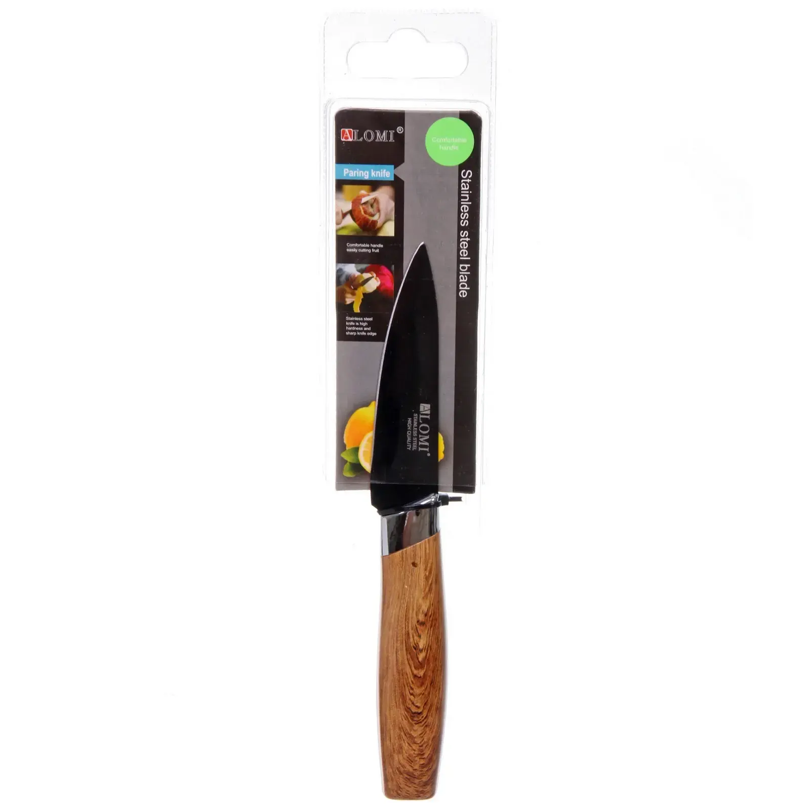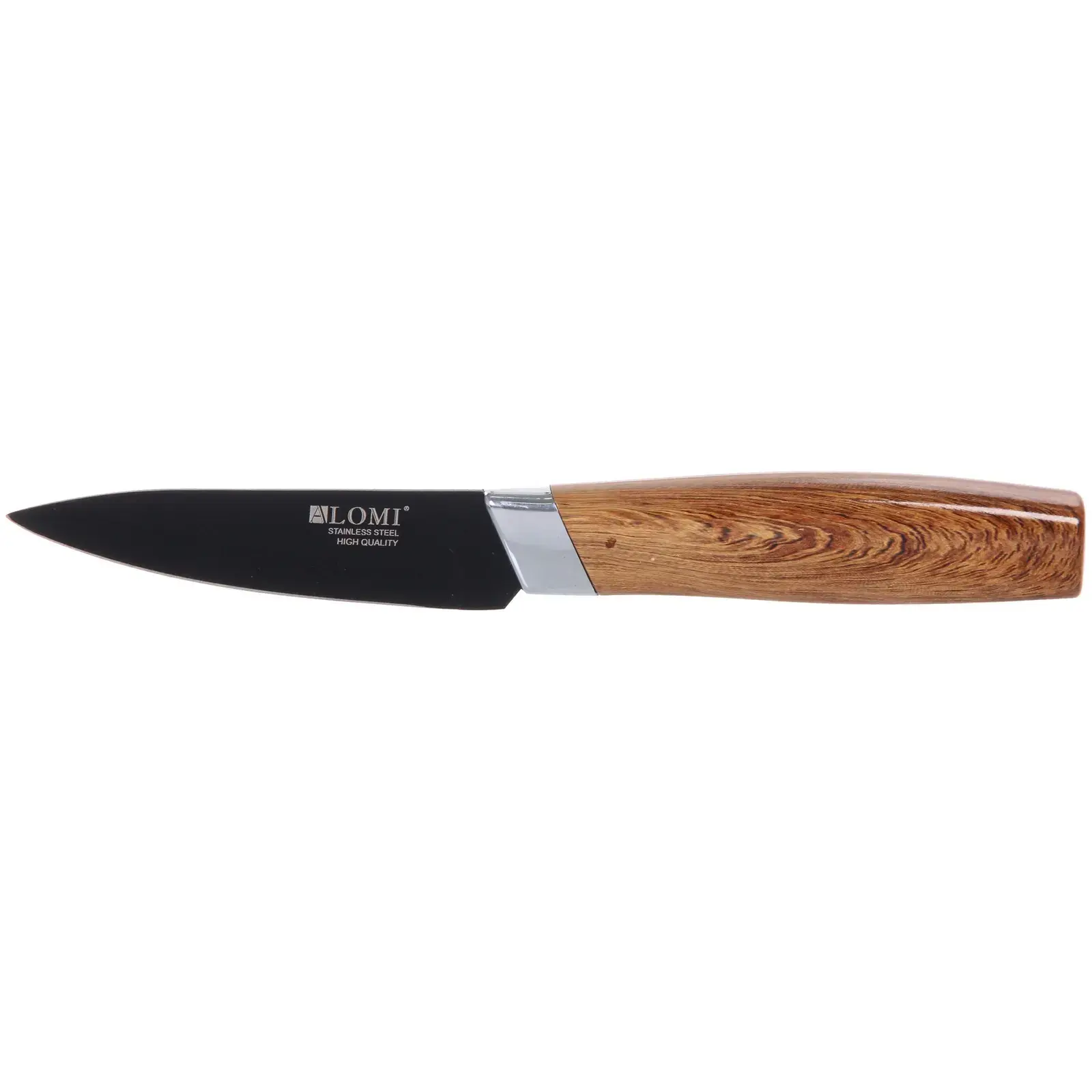 Длина лезвия ножа составляет 8,5 см, что делает его идеальным для работы с мелкими продуктами. Лезвие выполнено из нержавеющей стали, а ручка — из дерева с выразительной текстурой, что придает ножу стильный и современный вид. Нож упакован в прозрачную пленку, что позволяет сохранить его в идеальном состоянии до момента использования.